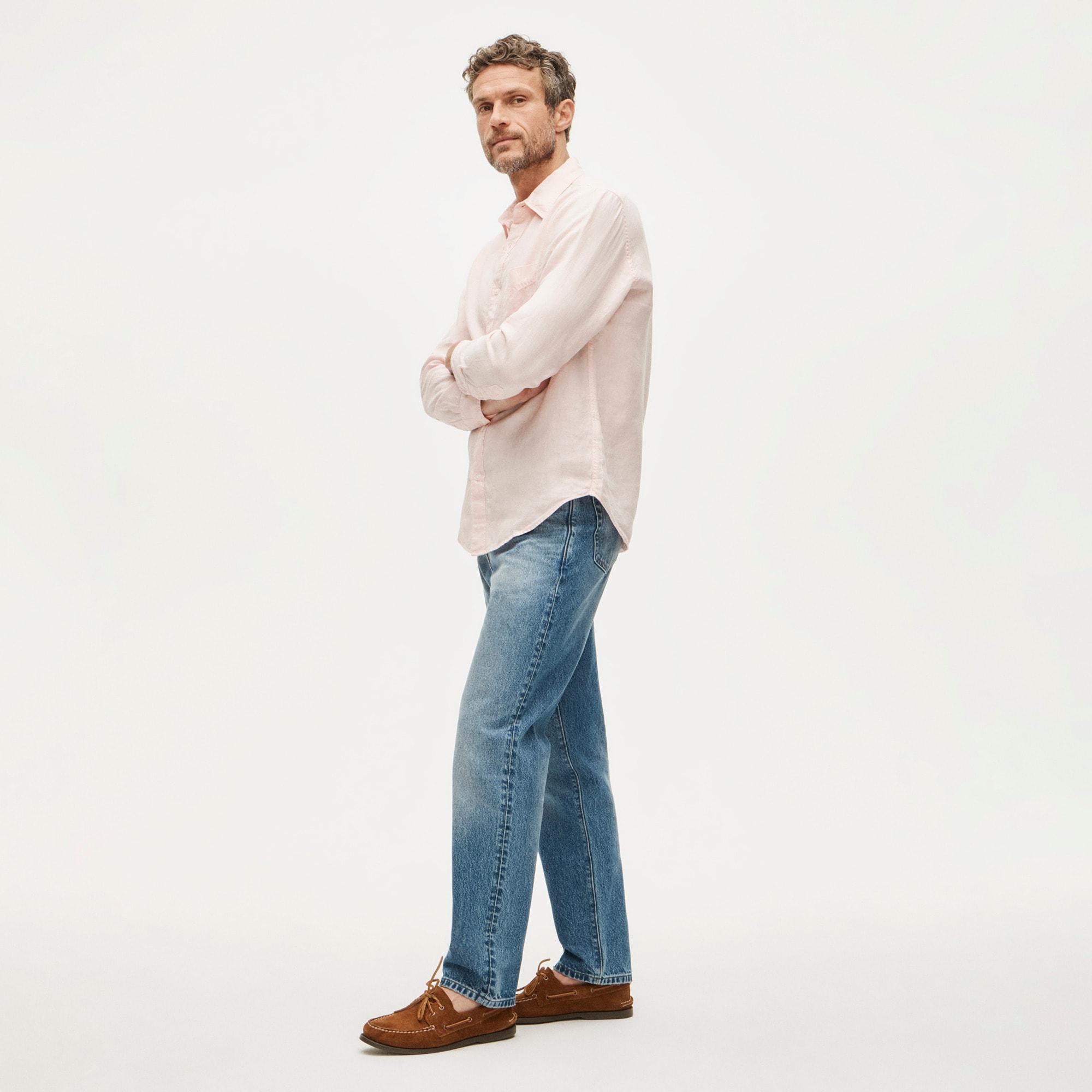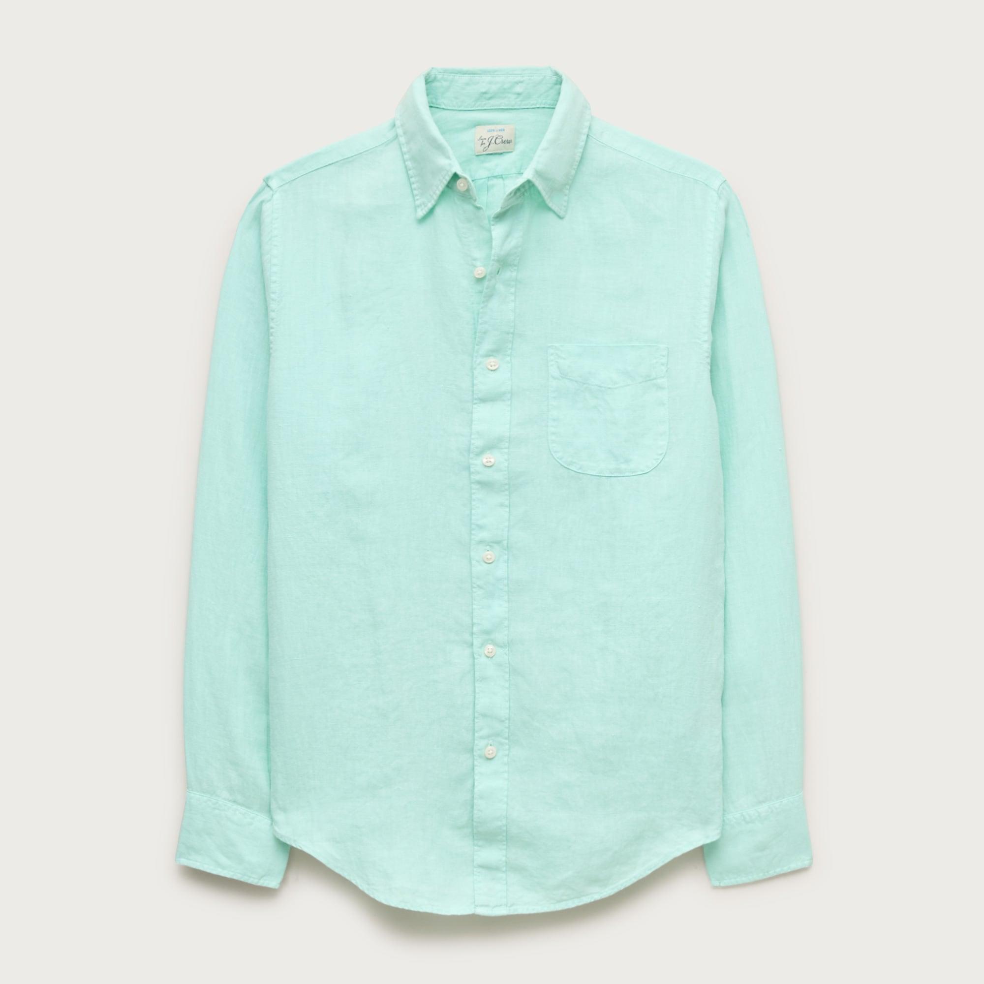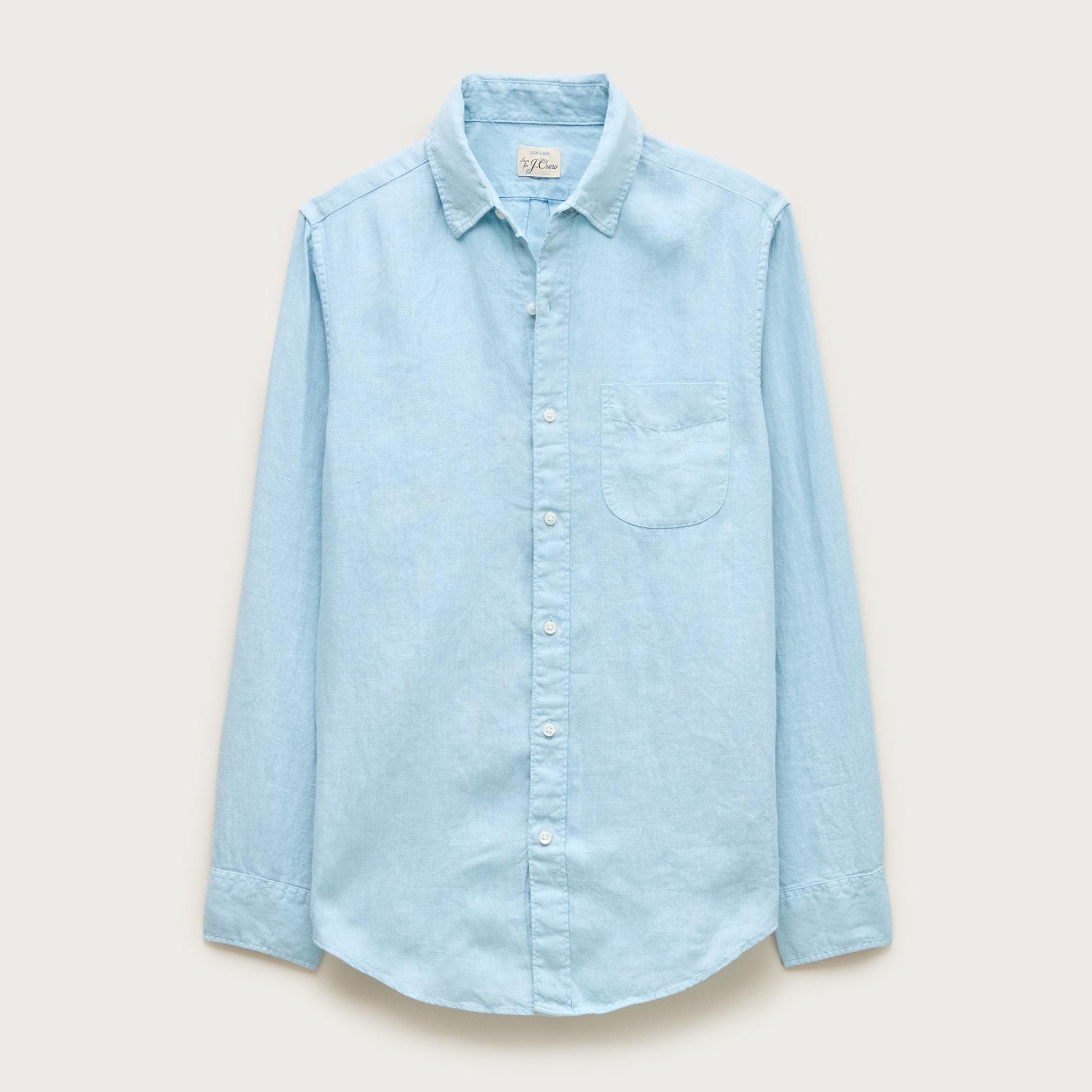 Washed linen shirt with point collar