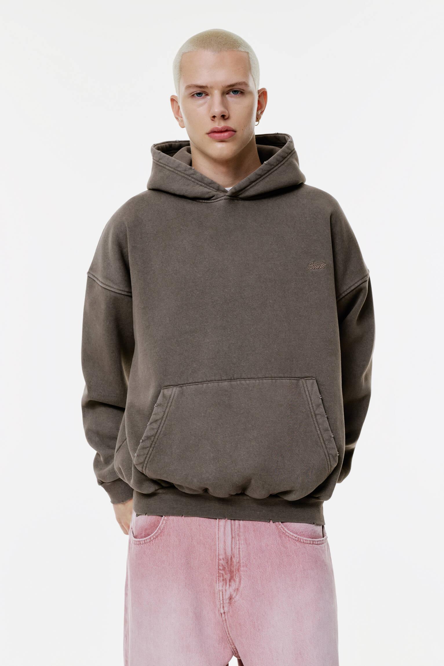 Hoodie available in various shades with a washed finish, with a contrast STWD embroidered logo, front pouch pocket and made of a cotton blend.