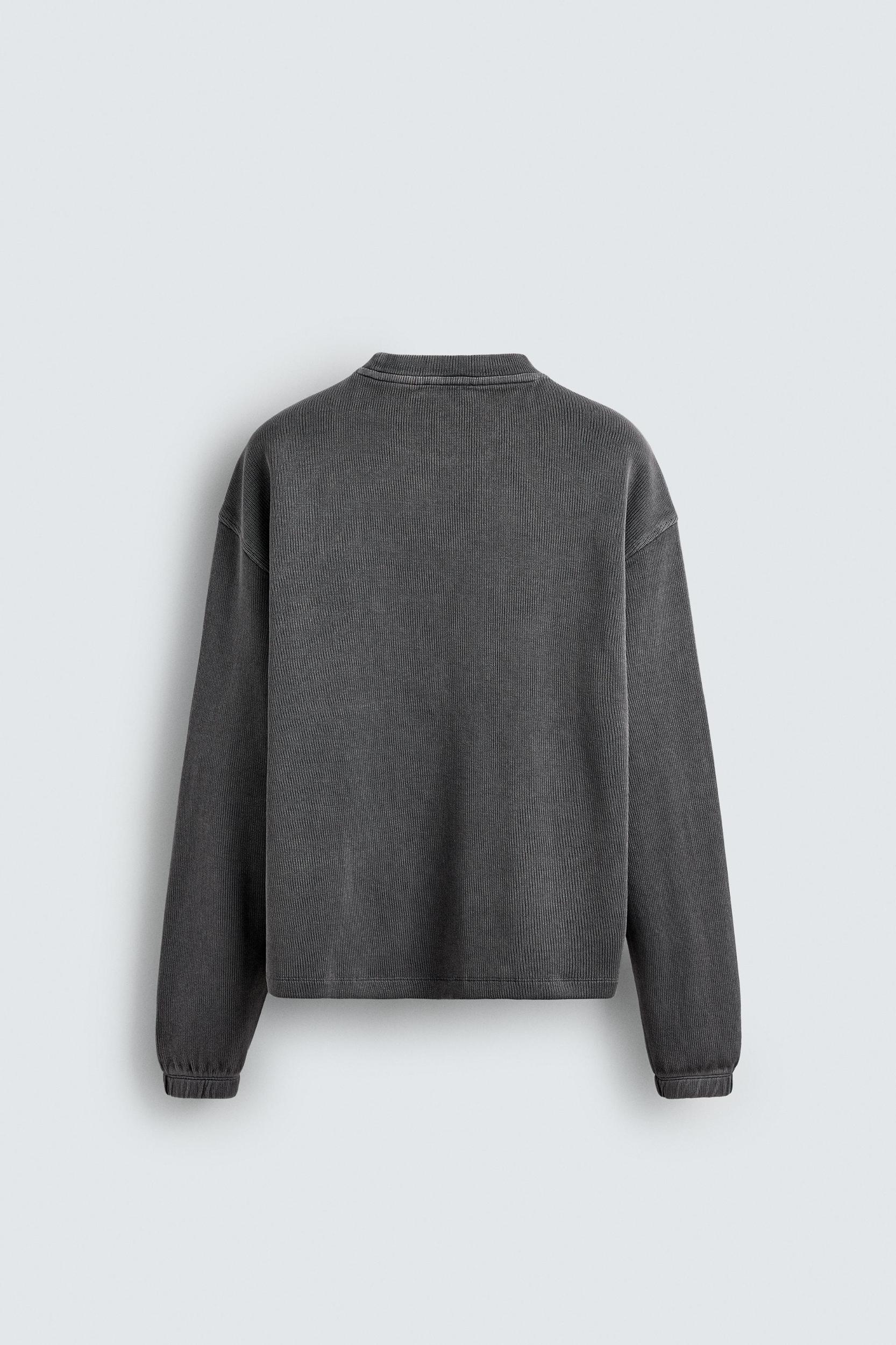 Relaxed fit sweatshirt made of compact cotton fabric. Round neck and long sleeves with elastic cuffs. Washed effect.