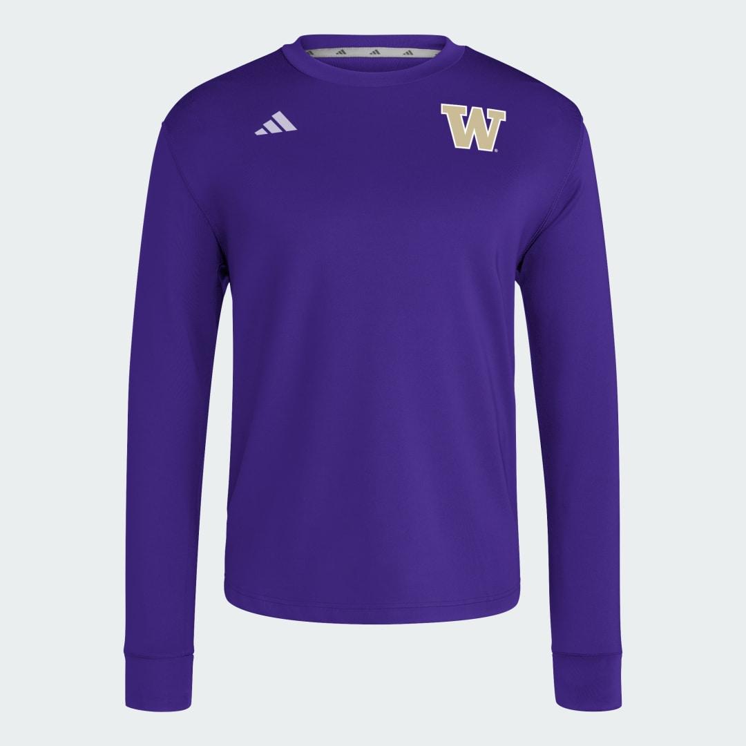 Get ready for game day or stay warm in the dugout in this Washington crew top from adidas. The crewneck and ribbed cuffs keep the fit snug while the polyester build has added stretch for easy movement. A Washington Huskies crest on the chest makes it easy to show off your school spirit.