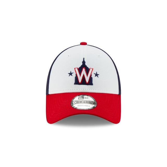 The Washington Nationals The League ALT 2 9FORTY Adjustable features an embroidered Nationals logo at the front panels with a team script atop of an adjustable closure at the rear.