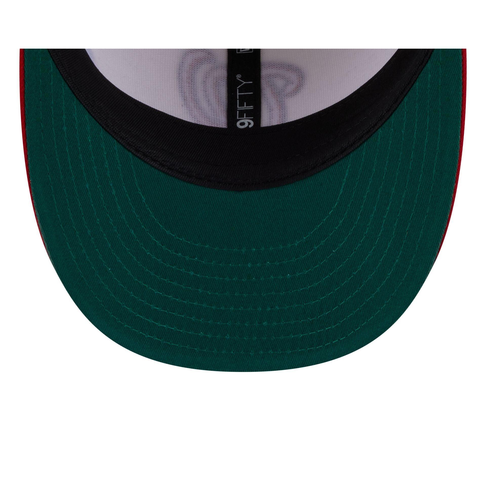 The Washington Nationals Tonal Florals White Pre-Curved 59FIFTY Fitted Cap features an embroidered Nationals logo at the front panels with a team color visor and a green undervisor. Additional details include chainstitched embroidered flowers with handstitched beading at the left-wear side and a matching MLB Batterman logo at the rear.