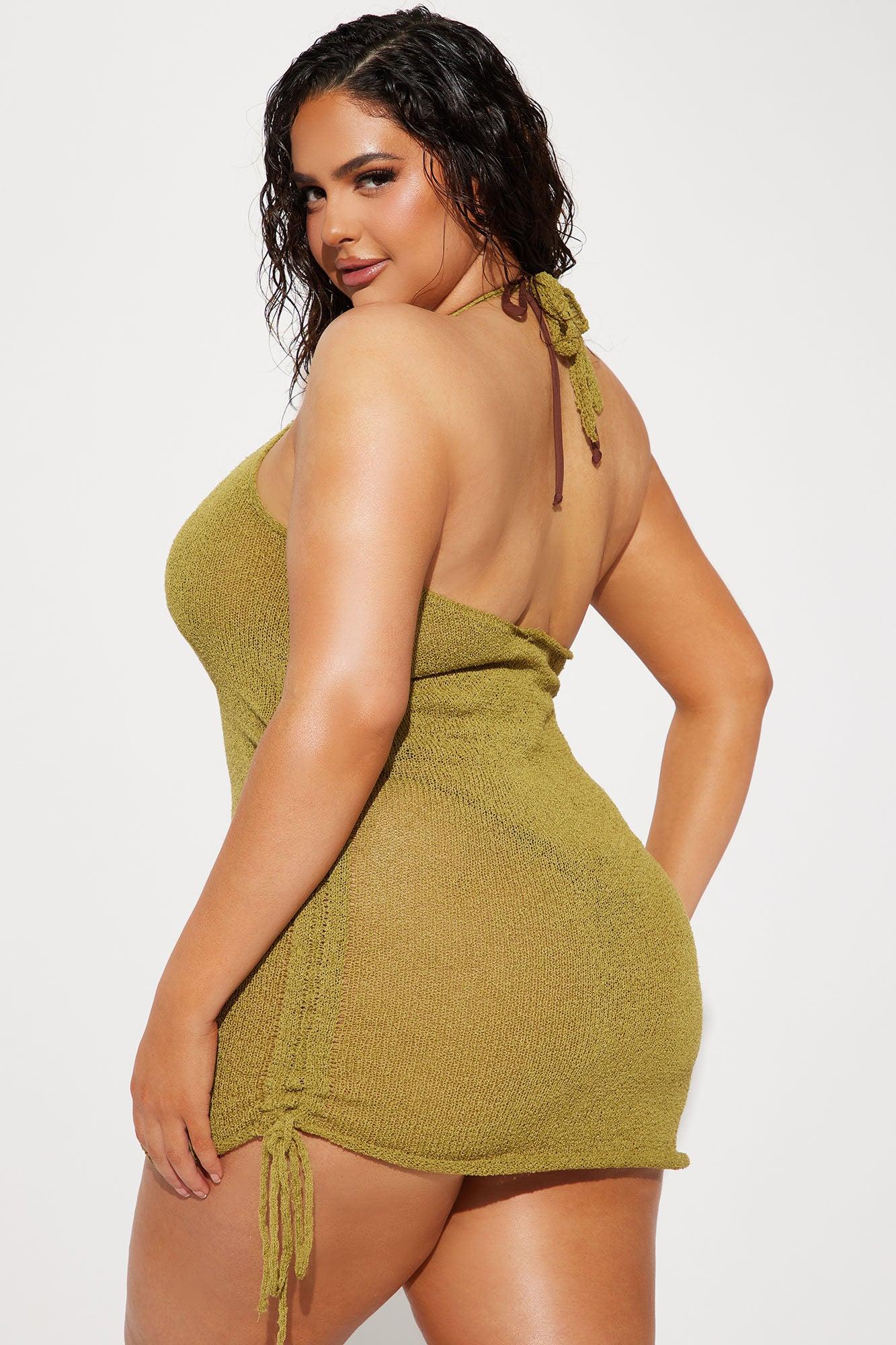 Watching Sunsets Crochet Cover Up Dress - Olive