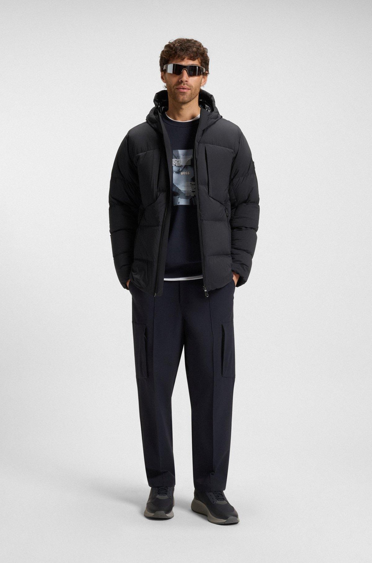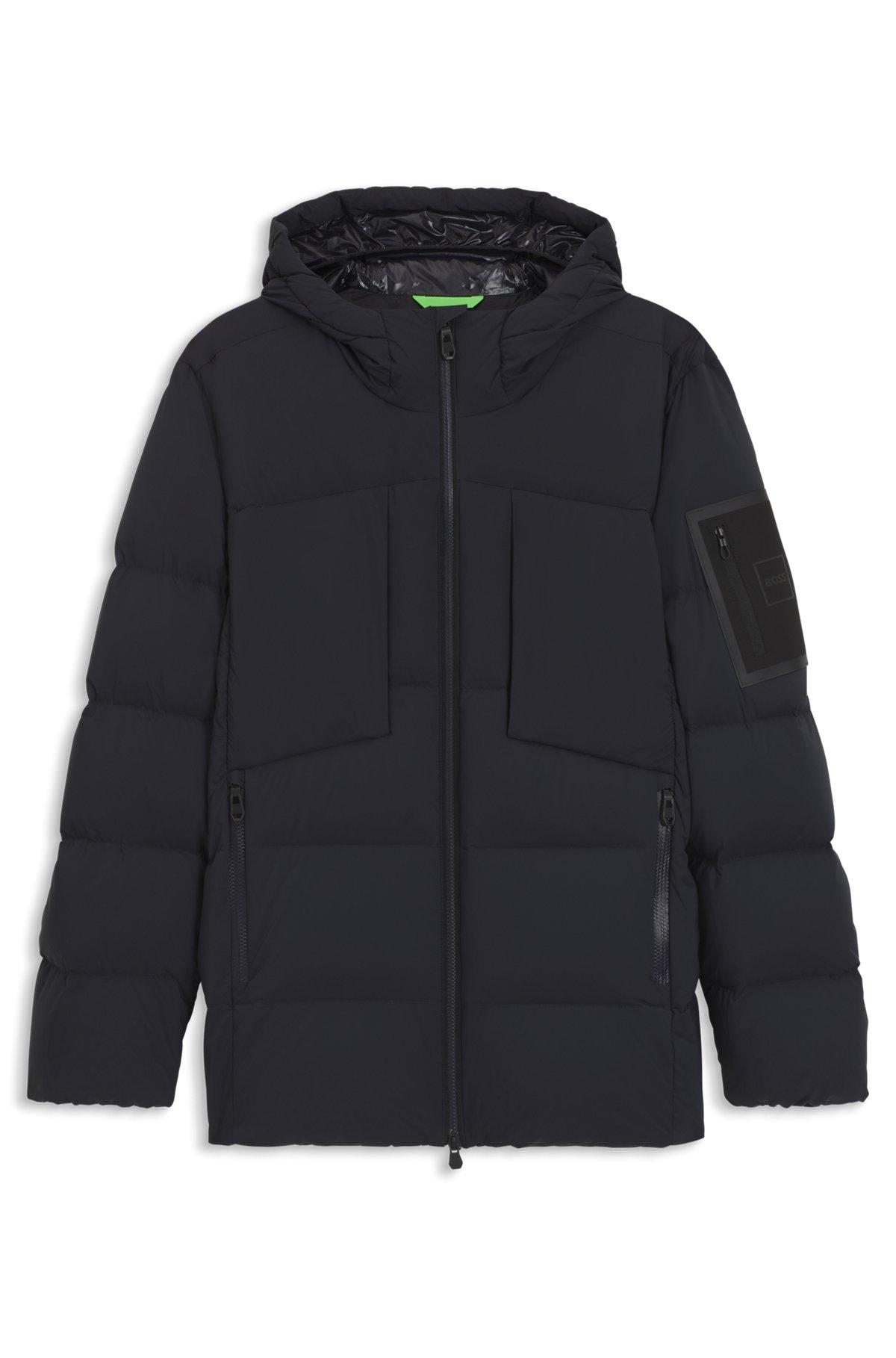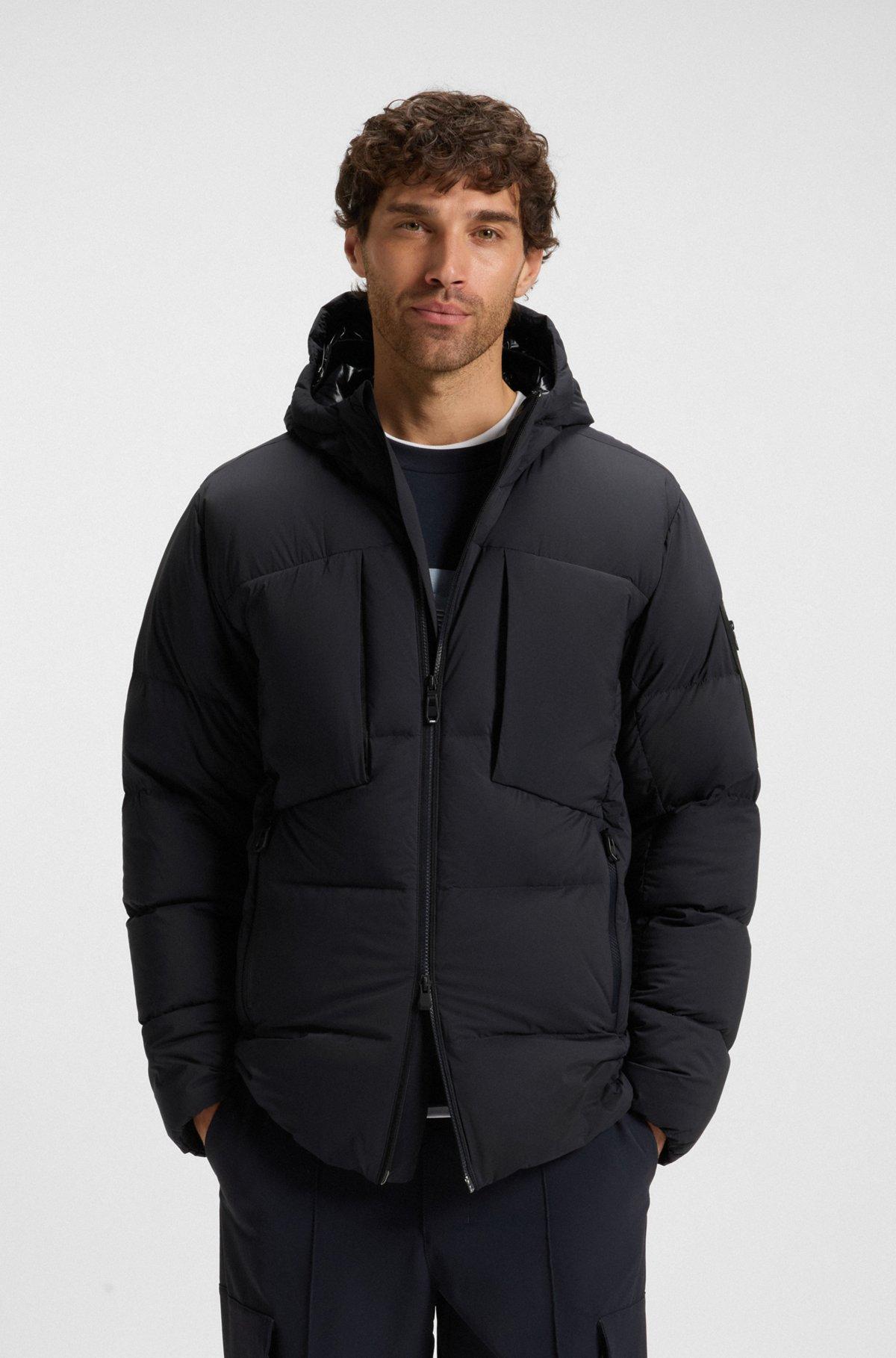 Filled with certified duck down and feather, this water-repellent BOSS Menswear parka is a must on chilly days. Windshield and binding on hood.