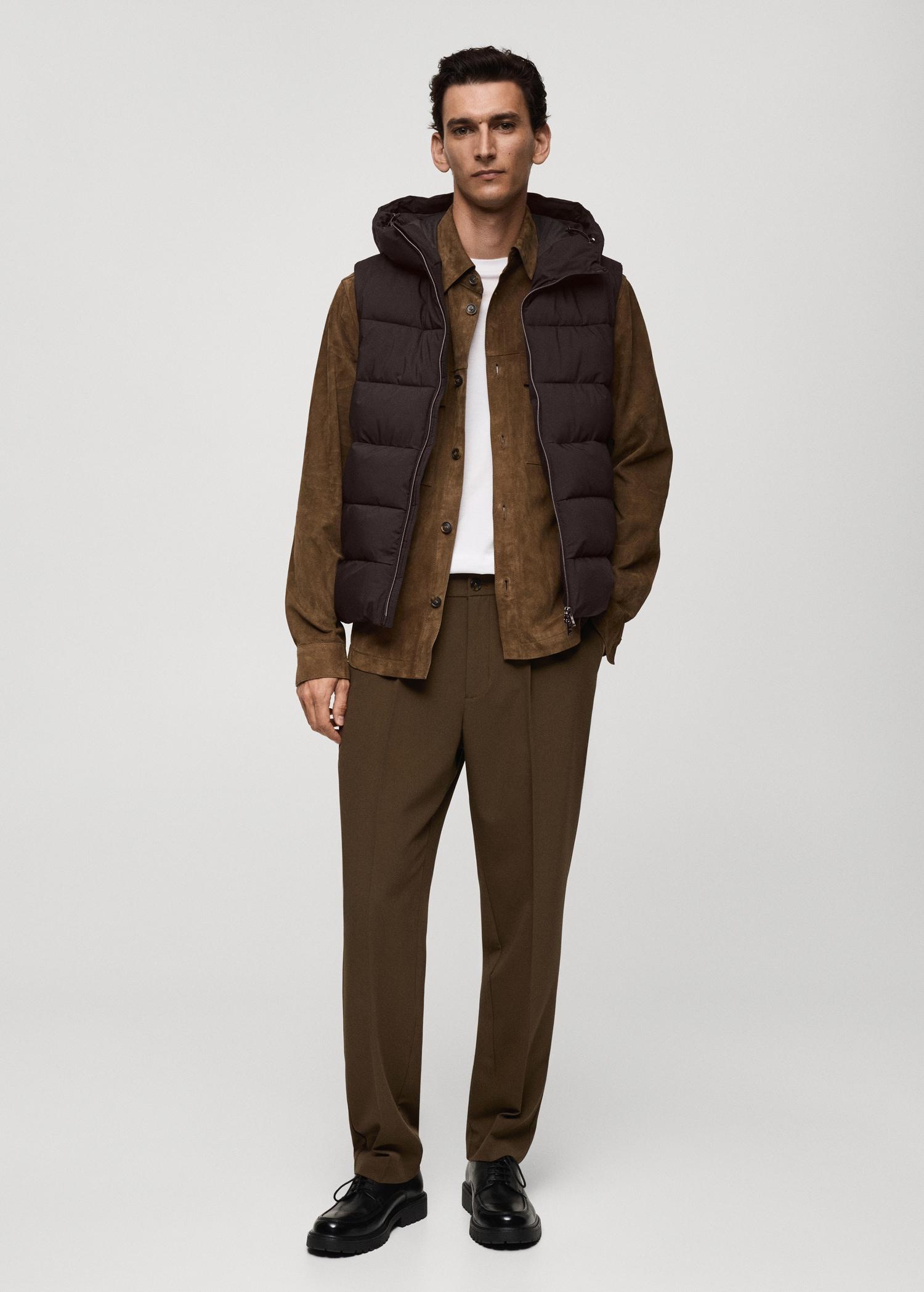 100% recycled polyester filling. Regular fit. Quilted design. Drawstring hood. Sleeveless. Front zipper closure. Two inner zipped pockets. Inner lining. The model is 6'3" and is wearing a size M. Water-repellent: The durable finish of this garment protects against light rain, repelling contact with water and raindrops. Thermoregulating: This fabric offers optimal breathability to keep you at a stable temperature. Windproof: This durable material offers protection against the wind for greater comfort in outdoor lifestyle. Hem with adjustable interior drawstring. Back length 27.76 in