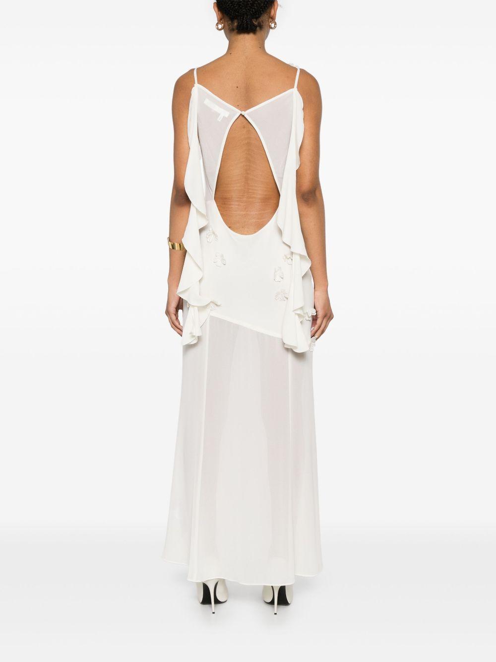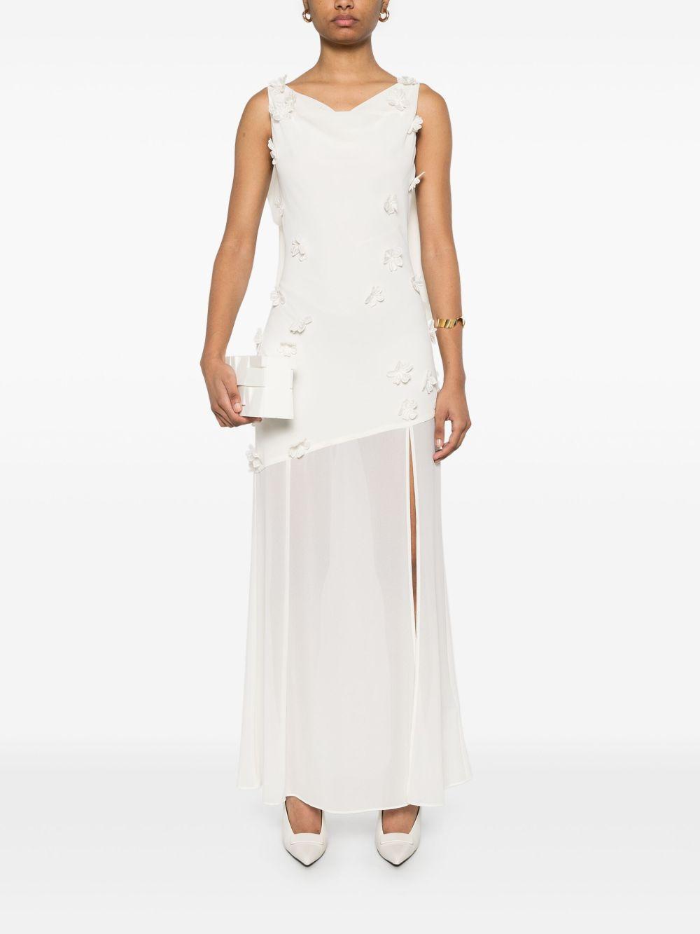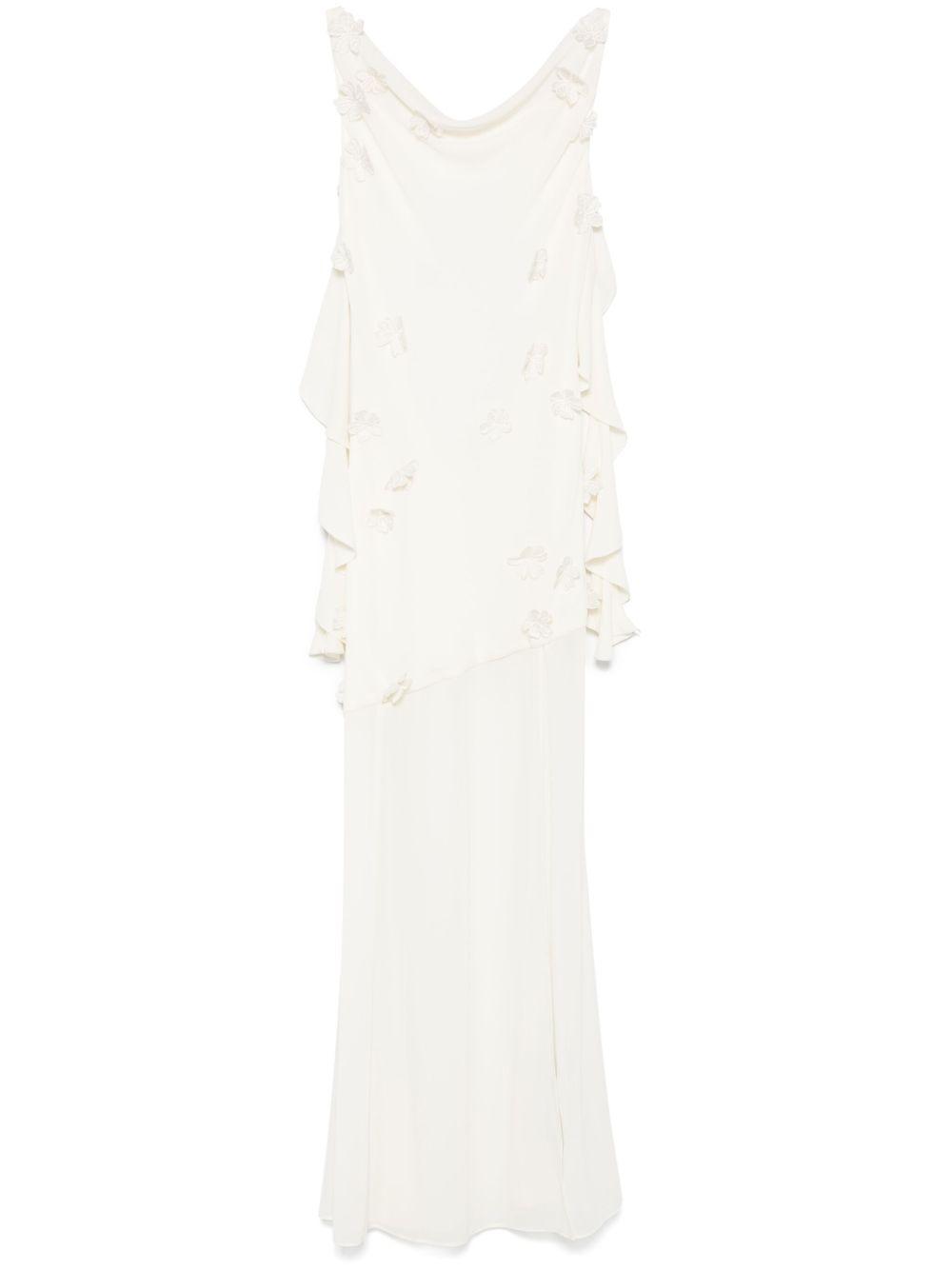 ROTATE BIRGER CHRISTENSEN waterfall maxi dress | Neutrals | light beige | single rear button fastening | open back | draped detailing | floral appliqué | Polyester/Recycled Polyester/Polyester | Cocktail & Party Dresses | Dresses | Clothing | Women