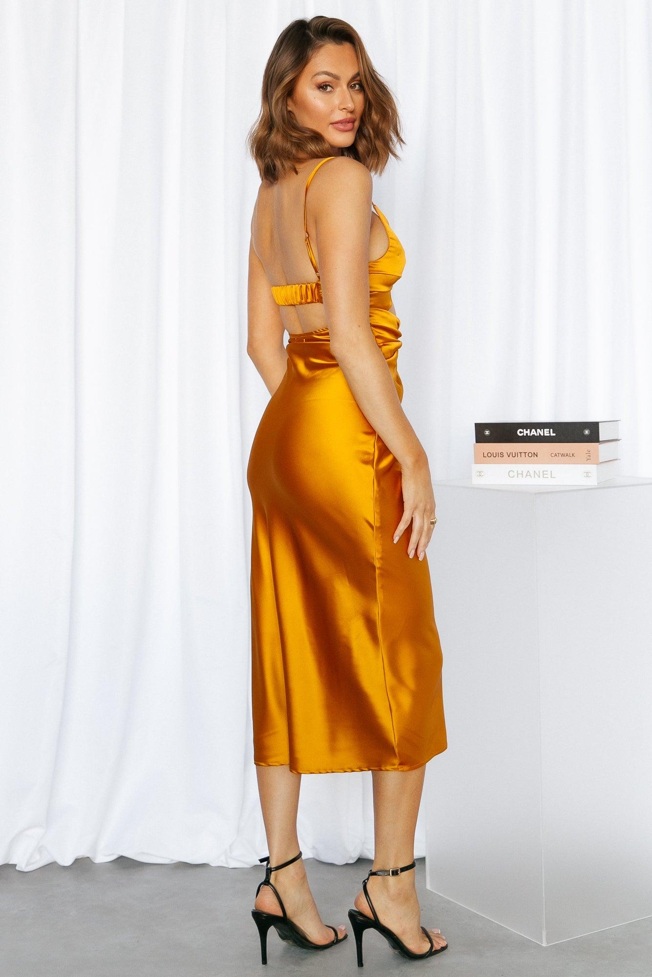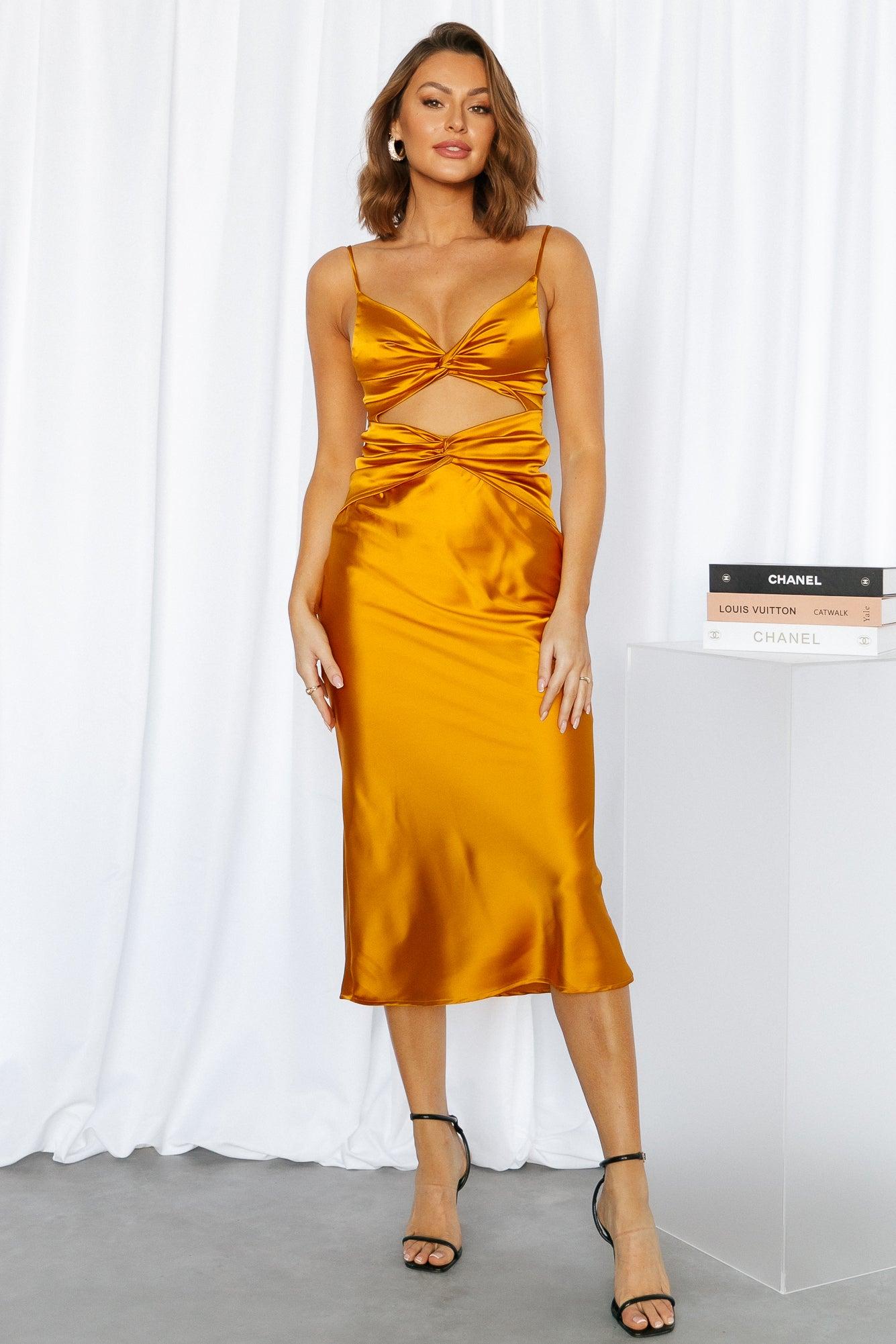 True to size. Lightweight and non-stretchy satin fabric. Adjustable shoulder straps. Side zipper. Polyester/Spandex. Are you looking for a flirty little number to show off your goods? Well, look no further than the Waterfall Views Midi. This little beauty is perfect for a night out on the town, or a casual day spent with friends. With its figure-hugging silhouette and tantalizing cut-outs, you'll be sure to turn heads wherever you go. So go ahead and show off a little skin in this hottie. Style yours with heels and waves.
