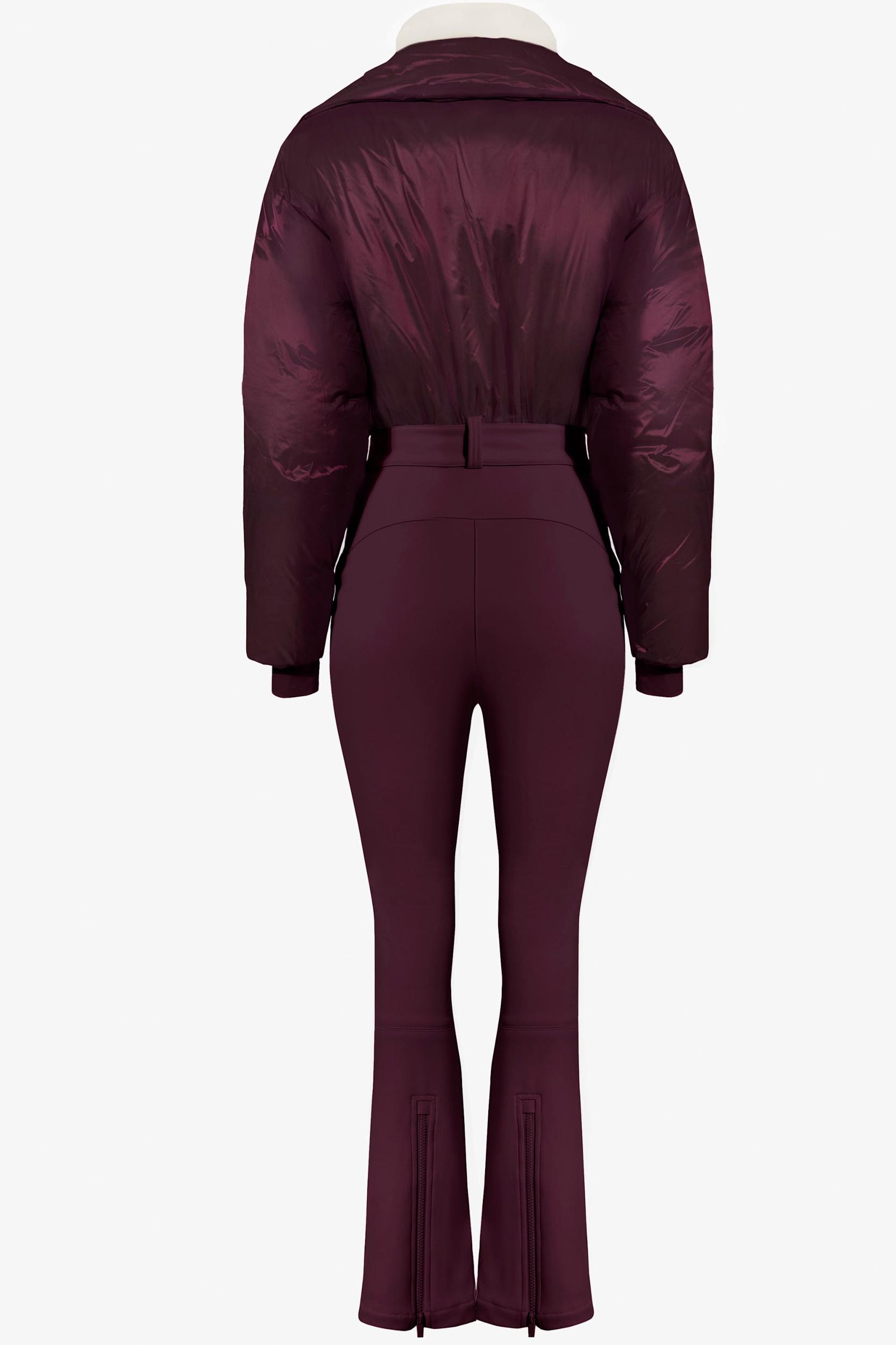 Piste perfection starts here. This waterproof ski suit features a wind-blocking double-layer design with an oversized top and fitted, flared legs for a flattering silhouette. Finished with a high collar, ski pass pocket, and zipped hems for easy boot access, it’s designed to be worn unzipped at the outer layer for a modern, relaxed après-ski look.• High collar• Long sleeves• Zip front fastening• Double-layer construction for wind blocking• Branded silicone badge and snowflake badge on sleeve• Inner cuffs with thumbholes• Ski pass pocket on sleeve• Zip front pockets• Adjustable belt buckle• Ribbed knit hem• Trousers are part fleece-lined• Internal leg ski gaiter• Zipped hem for easy on/off of boots• Oversized top with fitted-flare legs• Should be styled with outer layer unzipped• Waterproof 18k laminated taffeta fabric with fleece back (Top shell: 100% Polyamide; Lining/Padding: 100% Polyester; Bottom shell: 72% Polyamide, 28% Elastane; Base: 92% Polyester, 8% Elastane; Belt shell: 72% Polyamide, 28% Elastane; Padding: 100% Polyester)• 18k waterproof rating: ideal for wet and snowy conditions• Material is waterproof. Garment is not fully taped or seam sealed• Please note: rich colour and pearlescent finish may cause colour transfer. Avoid wearing with light-coloured items.• Regular length, centre front neck to waist seam approx. 44.5cm, inseam leg length approx. 80cm based on a size S• Product code: BT2407