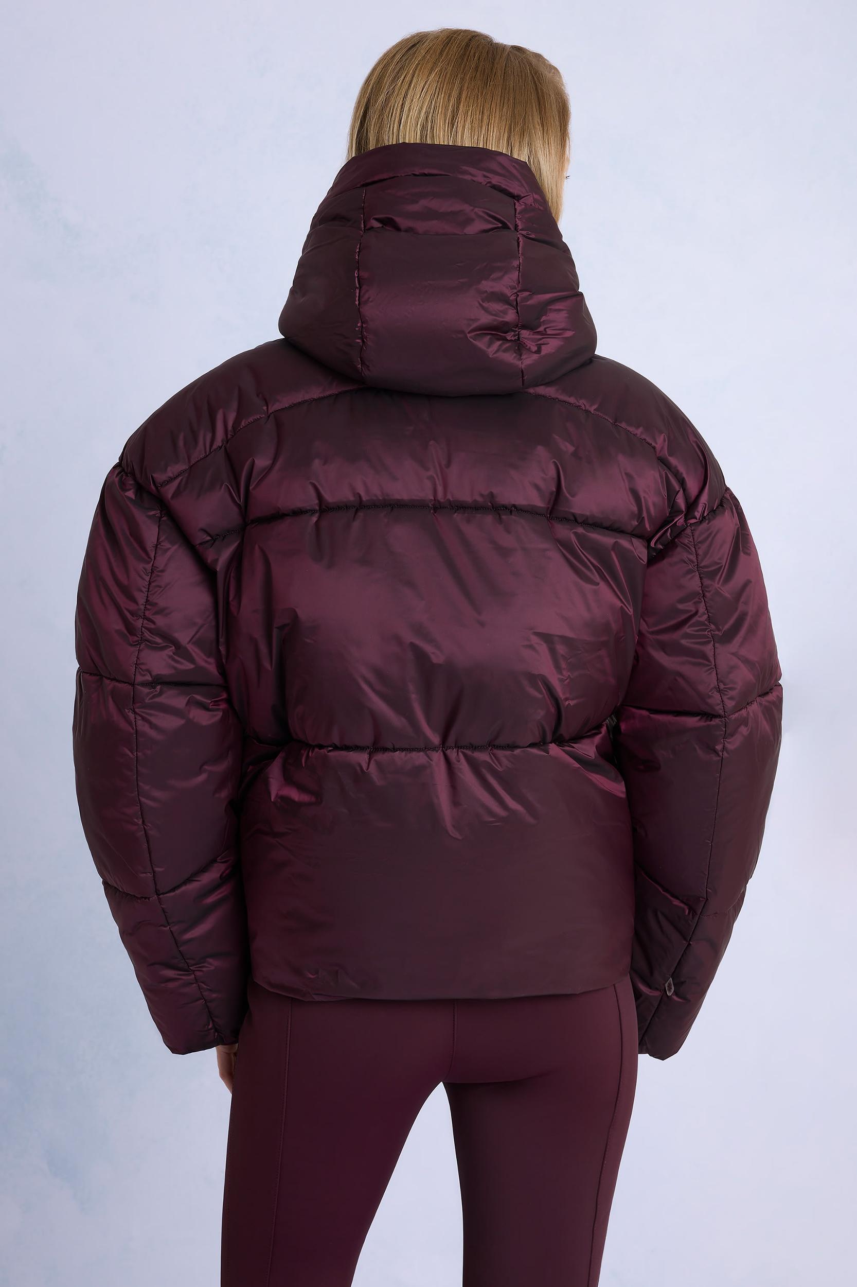 Effortlessly stylish on and off the piste. This oversized ski jacket is crafted from our new and improved waterproof fabric and cut to a cropped silhouette, framed by long sleeves with internal cuffs and thumbholes for a warm and comfortable fit. It features zip pockets and a detachable hood for customisable coverage, designed to keep you protected during snowy runs.• Stand collar• Detachable hood with snap buttons• Long sleeves• Zip fastening• Internal cuffs with thumbholes• Zip side pockets• Internal zip pocket• Branded silicone badge and snowflake badge• Oversized silhouette• Waterproof 18k laminated taffeta fabric with padding (Shell: 100% Polyamide; Lining/Padding: 100% Polyester)• 18k waterproof rating: ideal for wet and snowy conditions• Material is waterproof. Garment is not fully taped or seam sealed• Please note: rich colour and pearlescent finish may cause colour transfer. Avoid wearing with light-coloured items.• Cropped length, centre front approx. 49cm based on a size S• Product code: BT2402