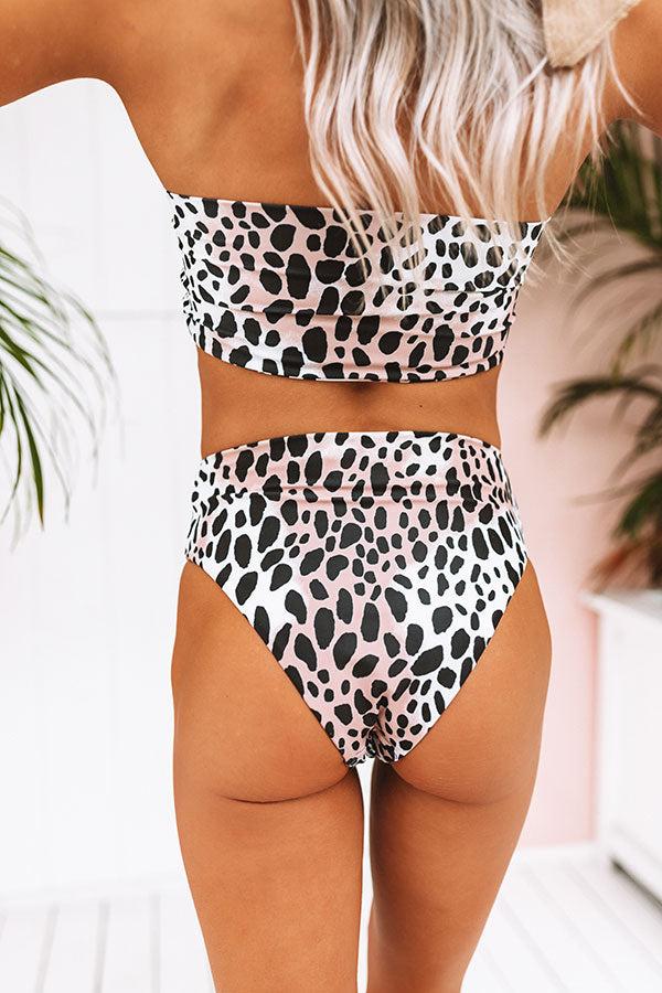 Make some waves in this adorable bikini bottom featuring a stretchy lightweight polyester material patterned with a bold black, white, and brown leopard print and and a high elastic waistband that falls into a cheeky fit silhouette! This piece styles perfectly with our "Wave Breaker Bandeau Bikini Top," a cover up, and sunnies for the ultimate two-piece swim set! Measurements S : Hip 32-36", Waist 24-26". M : Hip 34-38", Waist 26-28". L : Hip 36-40", Waist 28-30".