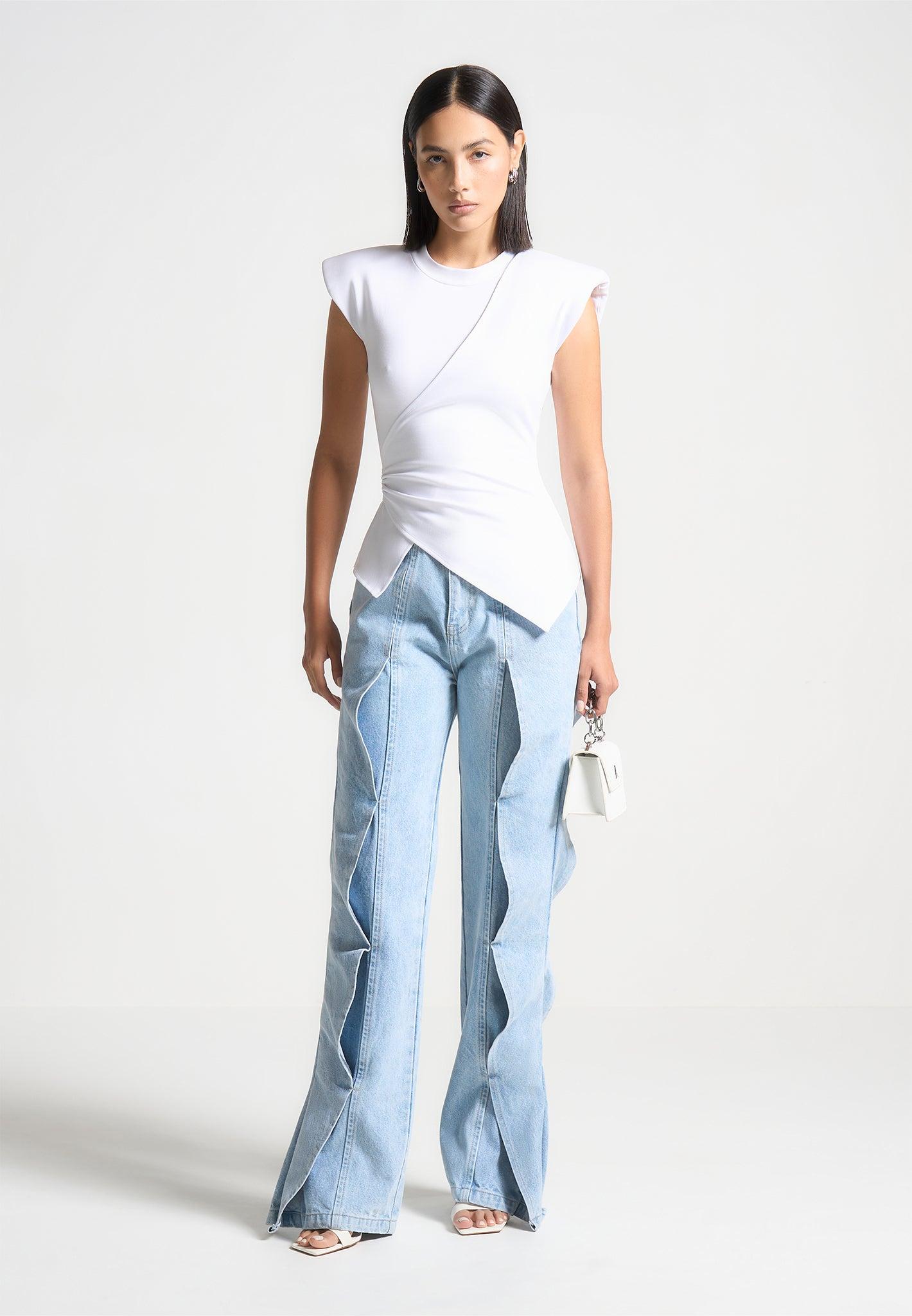 Maé - Wave Detail Straight Leg Jeans - Light Blue Female Product Image