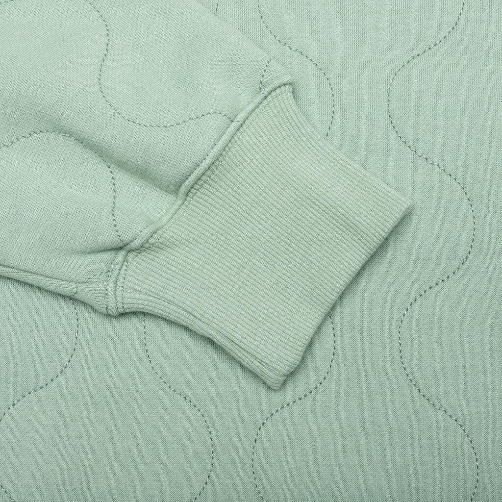 The Wave Quilted Hoodie in Matcha combines everyday comfort with refined detailing. Made from a durable cotton-polyester blend, this hoodie features embroidered branding on the front for a subtle yet elevated touch. The design includes a kangaroo pocket, an attached hood, and ribbed cuffs and hem for a classic fit. A versatile piece that transitions seamlessly between casual and elevated looks. 65% Cotton/35% Polyester Embroidered branding on front Kangaroo pocket Attached hood Ribbed cuffs and hem Style No: P24W007-MATCHA P24W007 MATC