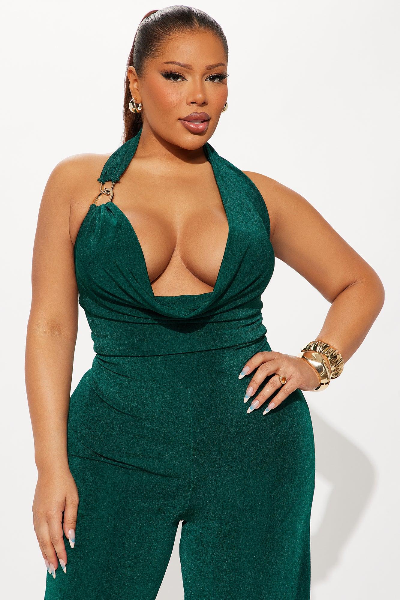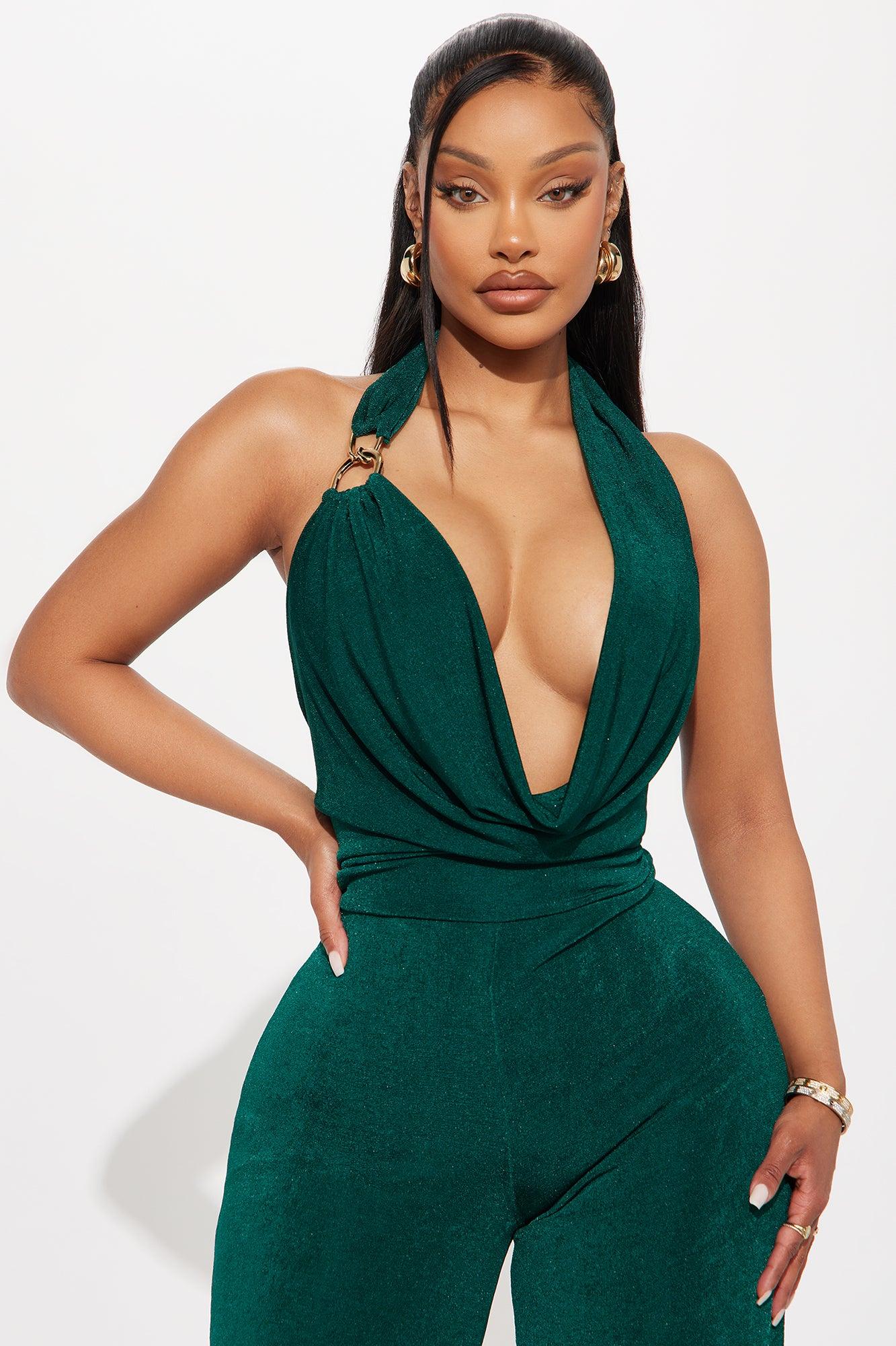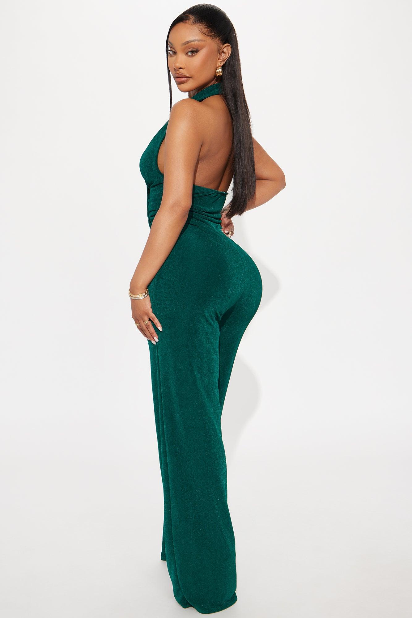 Wave Sounds Slinky Halter Jumpsuit - Hunter Female