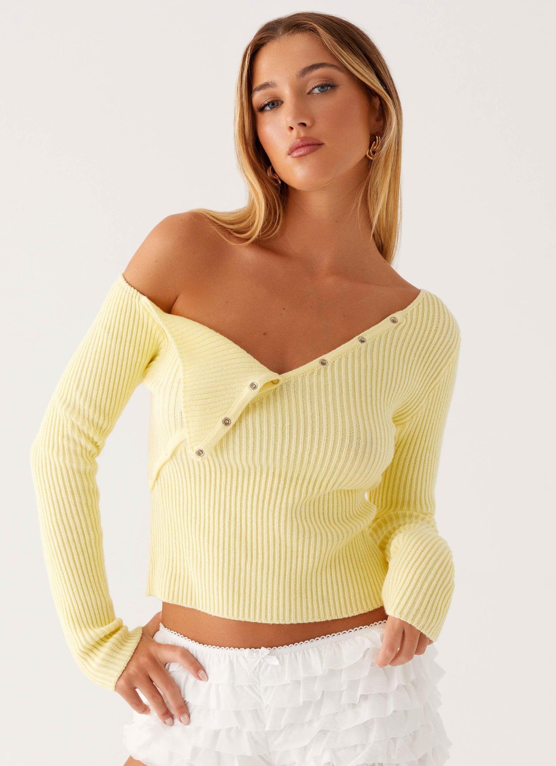 Peppermayo Exclusive The Waverly Knit Top brings edge to elegance with its asymmetrical off-shoulder neckline and luxe stretch knit material. Effortlessly chic, this top is made to flow with the rhythm of balmy nights, perfect for a silhouette that commands attention from sunset to sundown. - Asymmetrical off-shoulder neckline- Front asymmetrical button- Unlined- Stretch knit material Size AU 8 / US 4 garment measurements: Bust: 66 cm / 26 inHem: 71 cm / 28 inLength: 49 cm / 19.3 in Yasmin is 174cm and wearing a size AU 6 / and US 2
