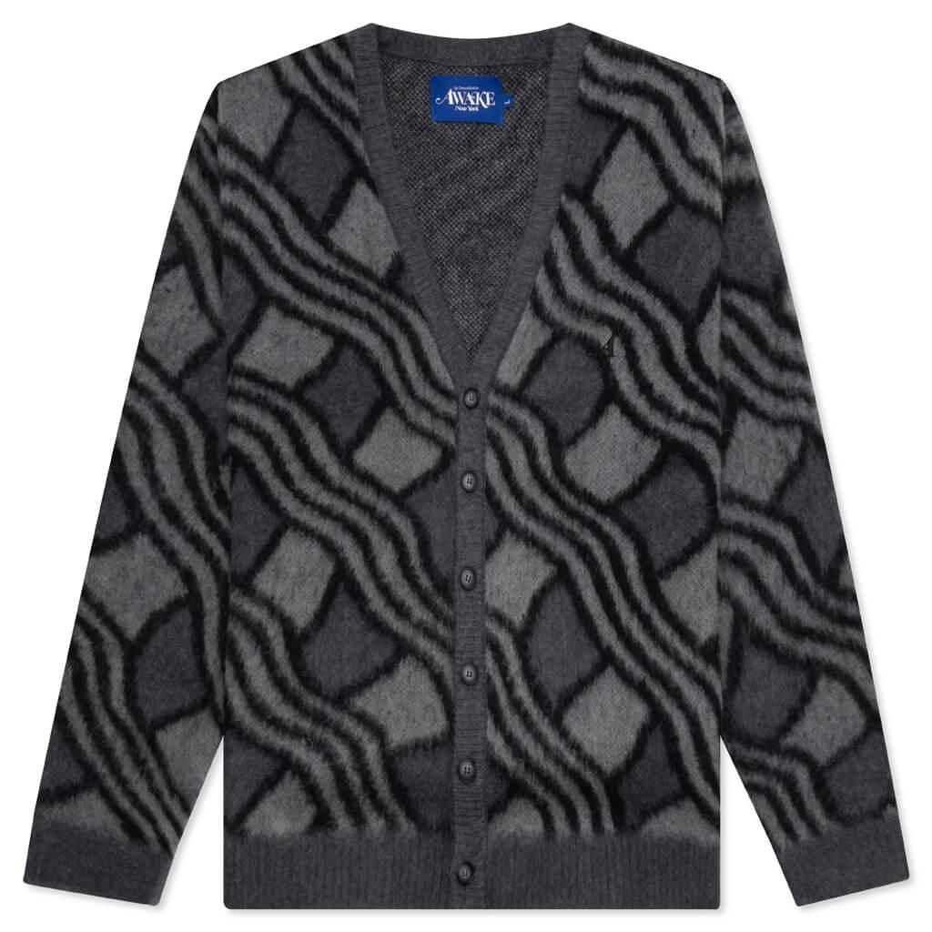The Awake NY Wavy Jacquard Mohair Cardigan makes an impression on any collection. The design features a jacquard mohair blended cardigan that is treated with printed wavy graphics and a button closure. The rib-knit detailing offers a finishing touch. Mohair blend Front button closure Printed wavy graphics Rib-knit trims Style No: AWK-SP23-KN001-CHA
