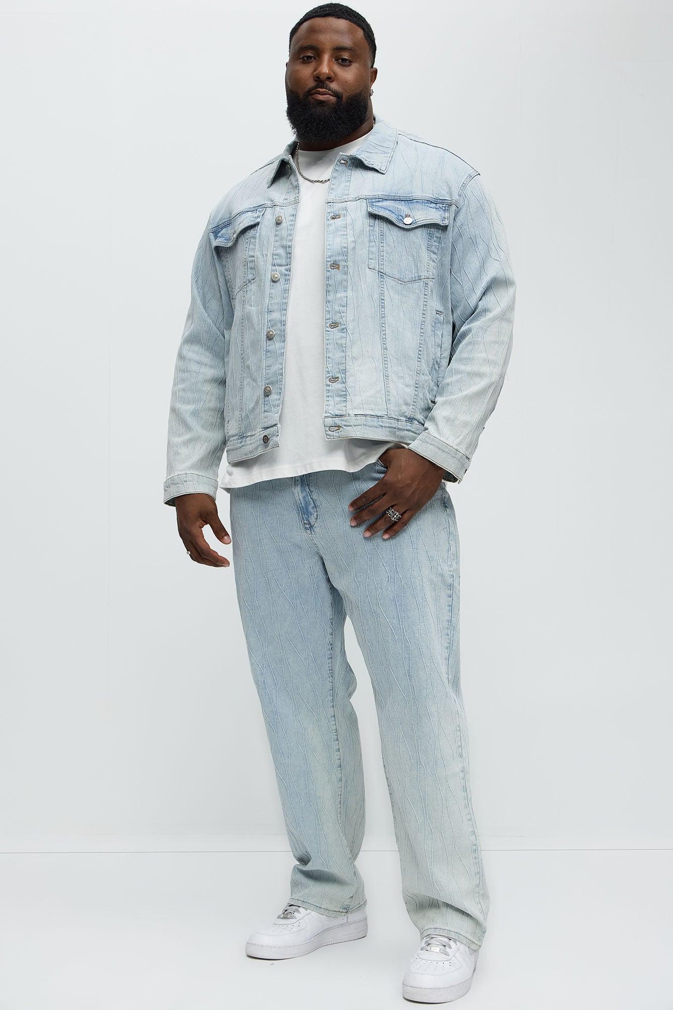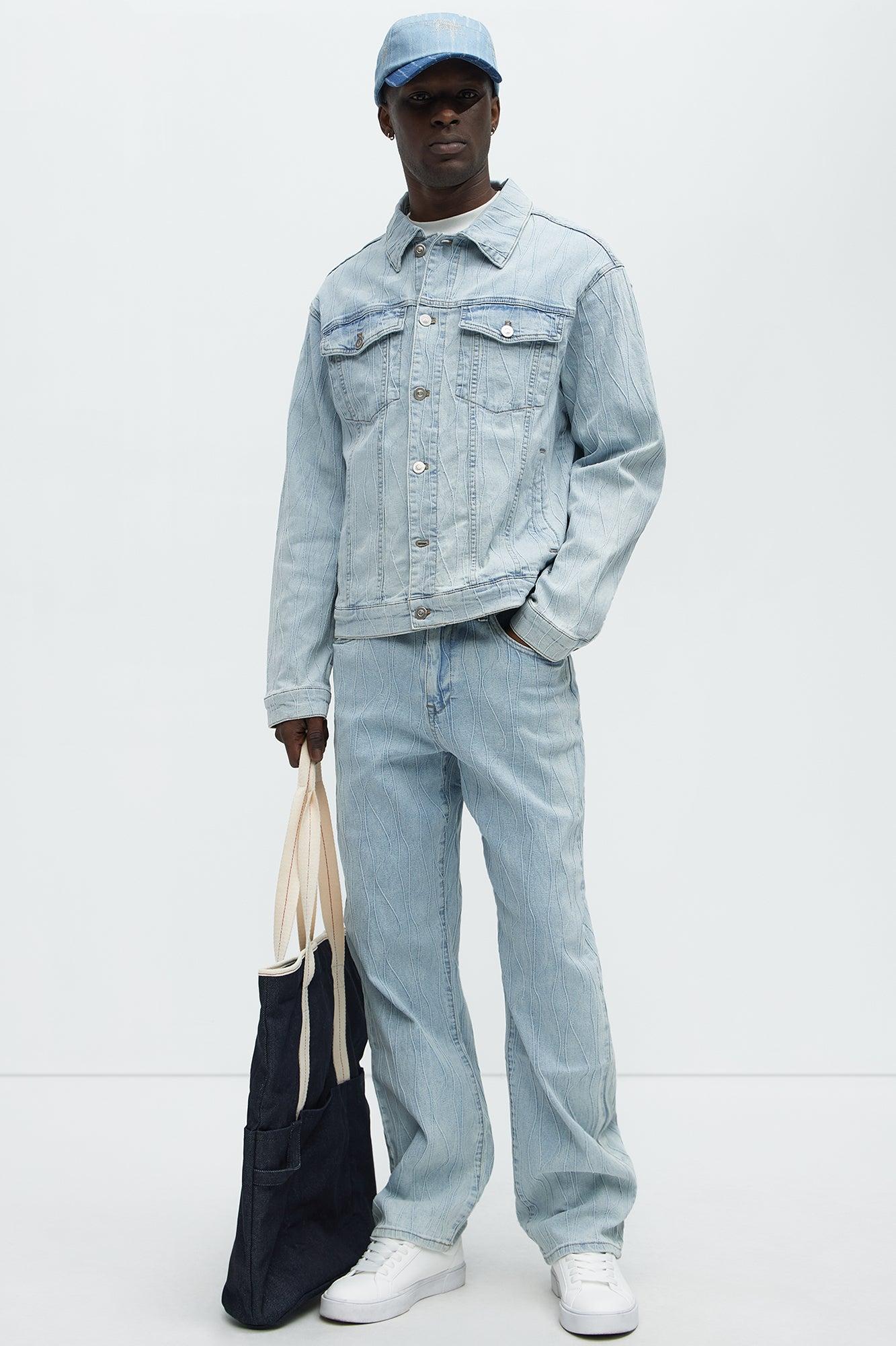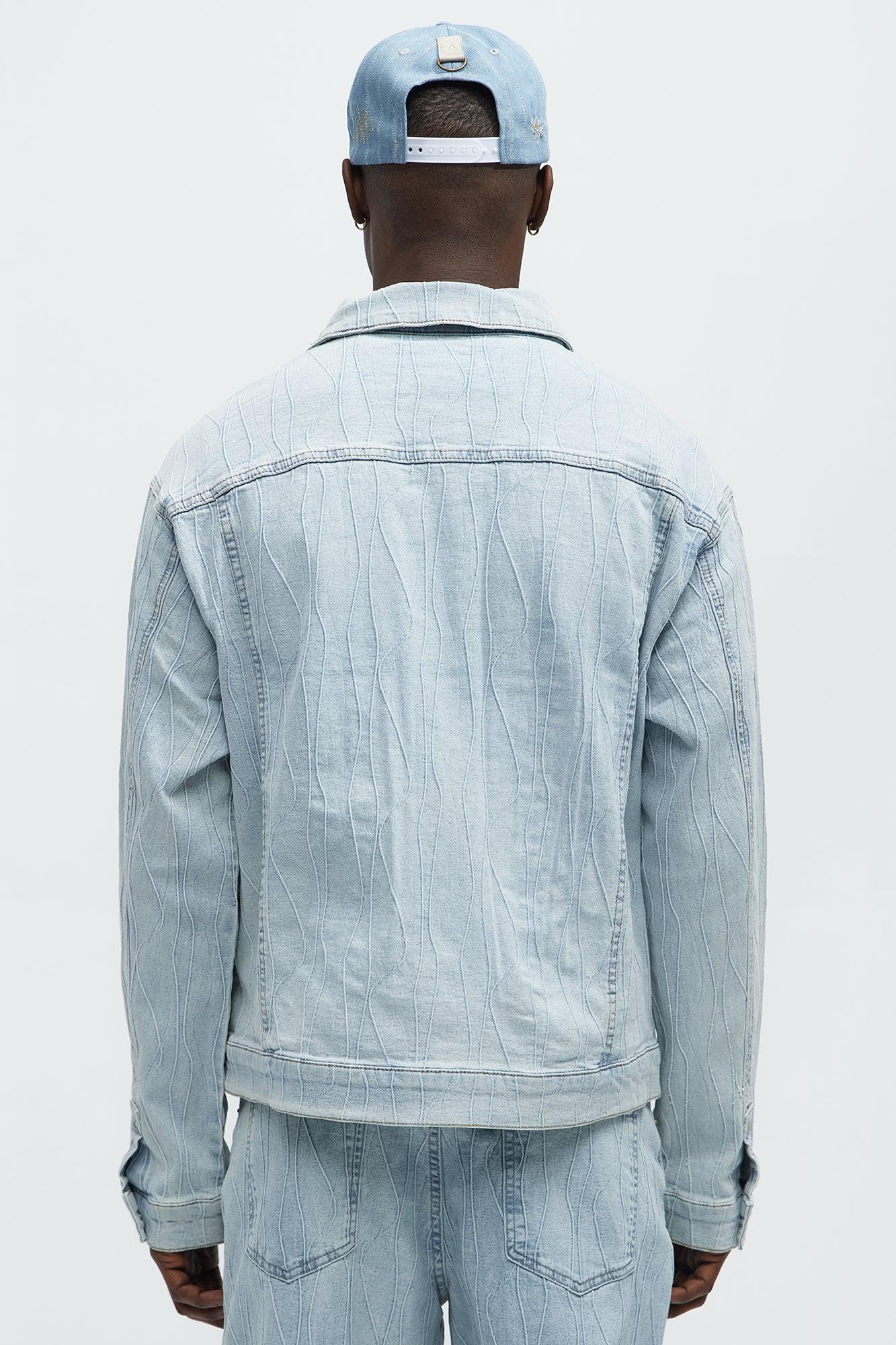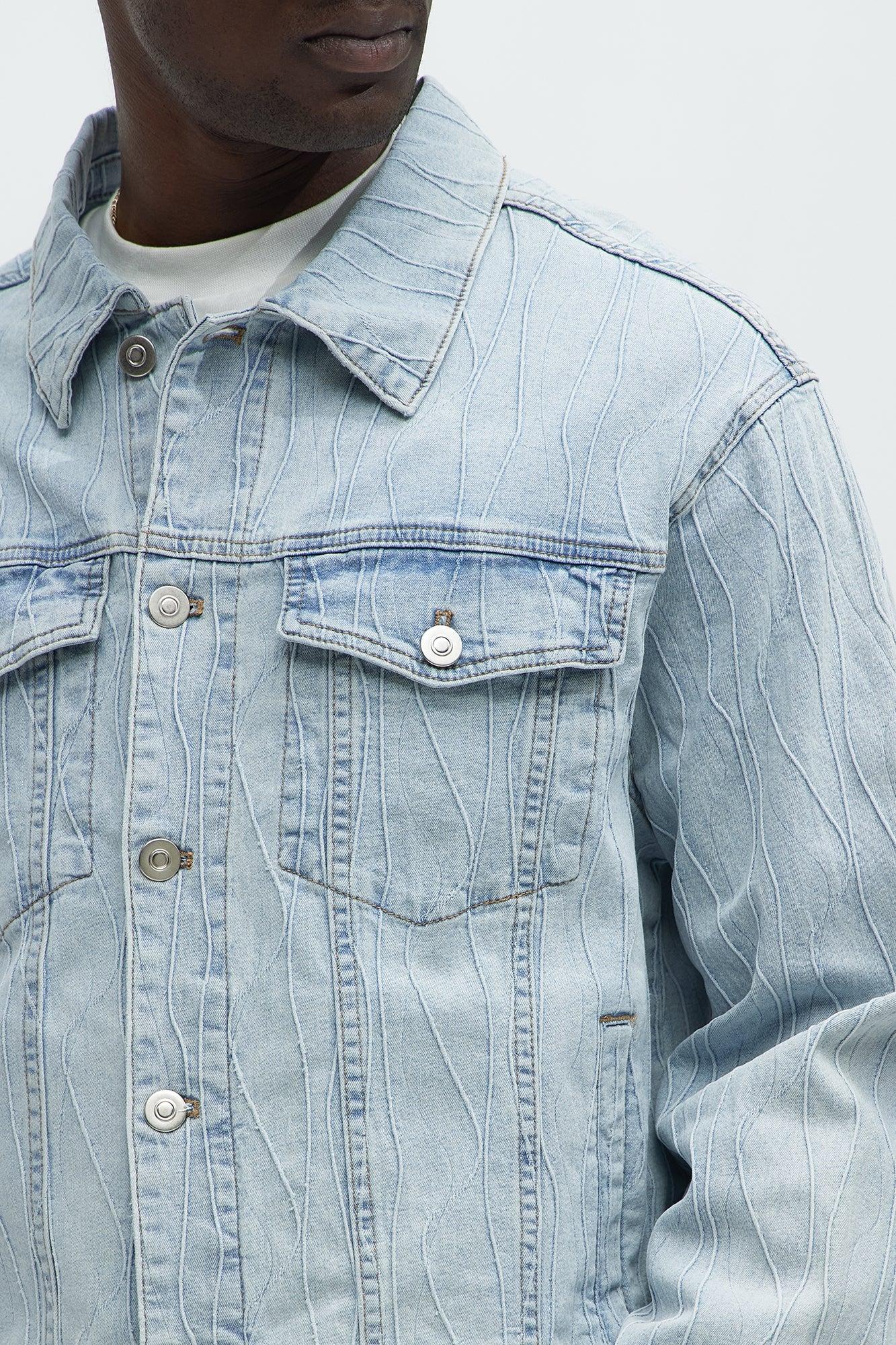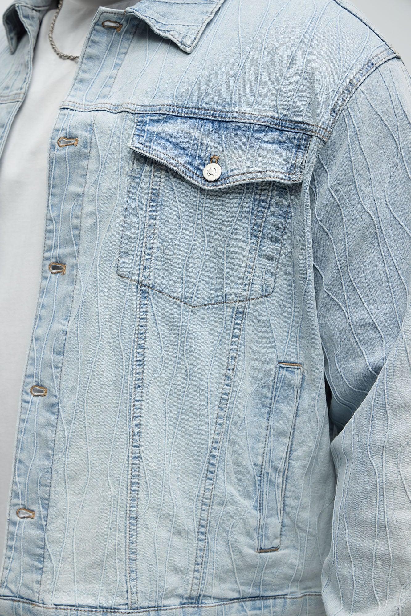Wavy Jacquard Trucker Denim Jacket - Light Wash