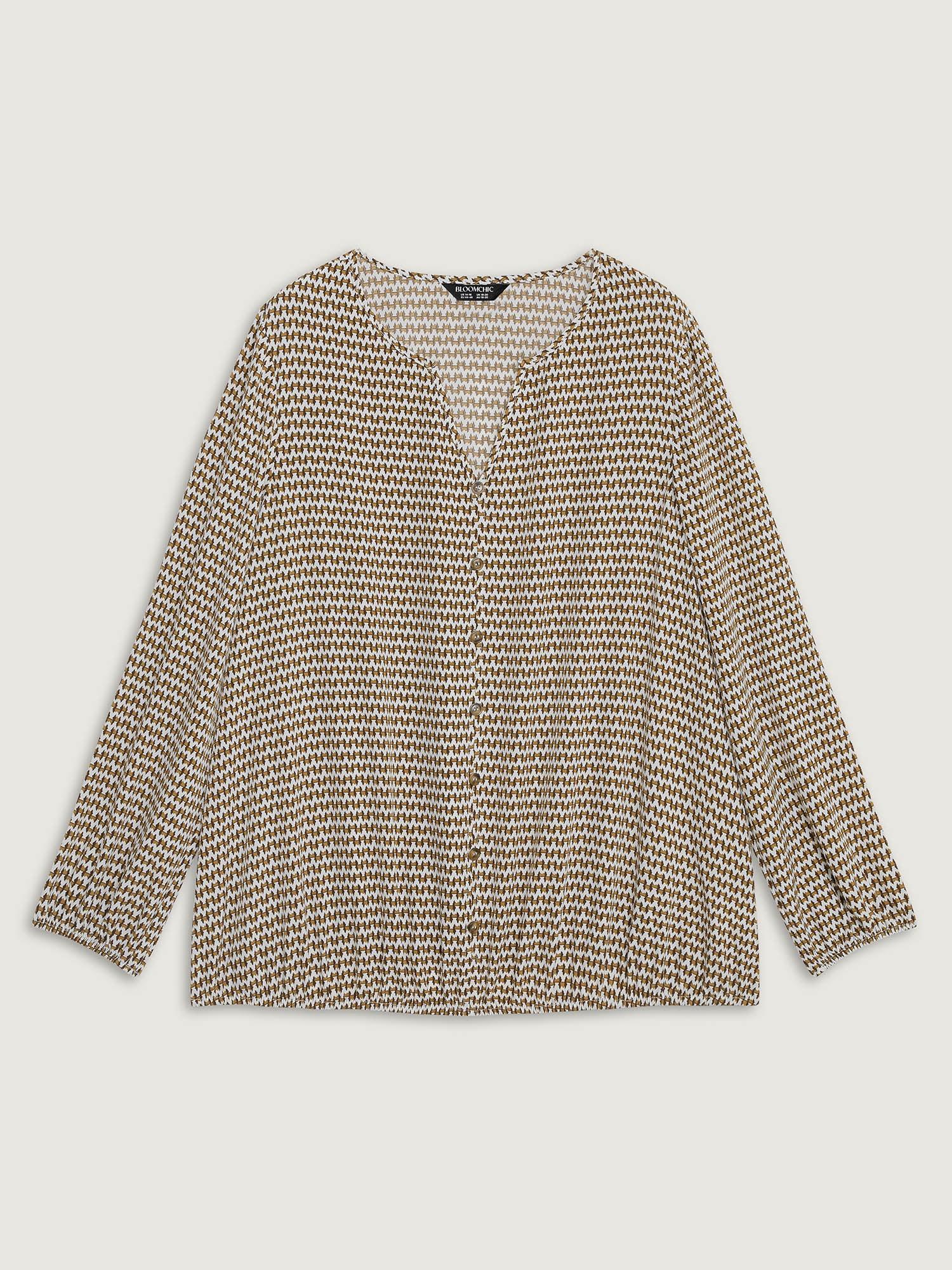 Wavy Stripe Button Detail Split Neck Blouse Female