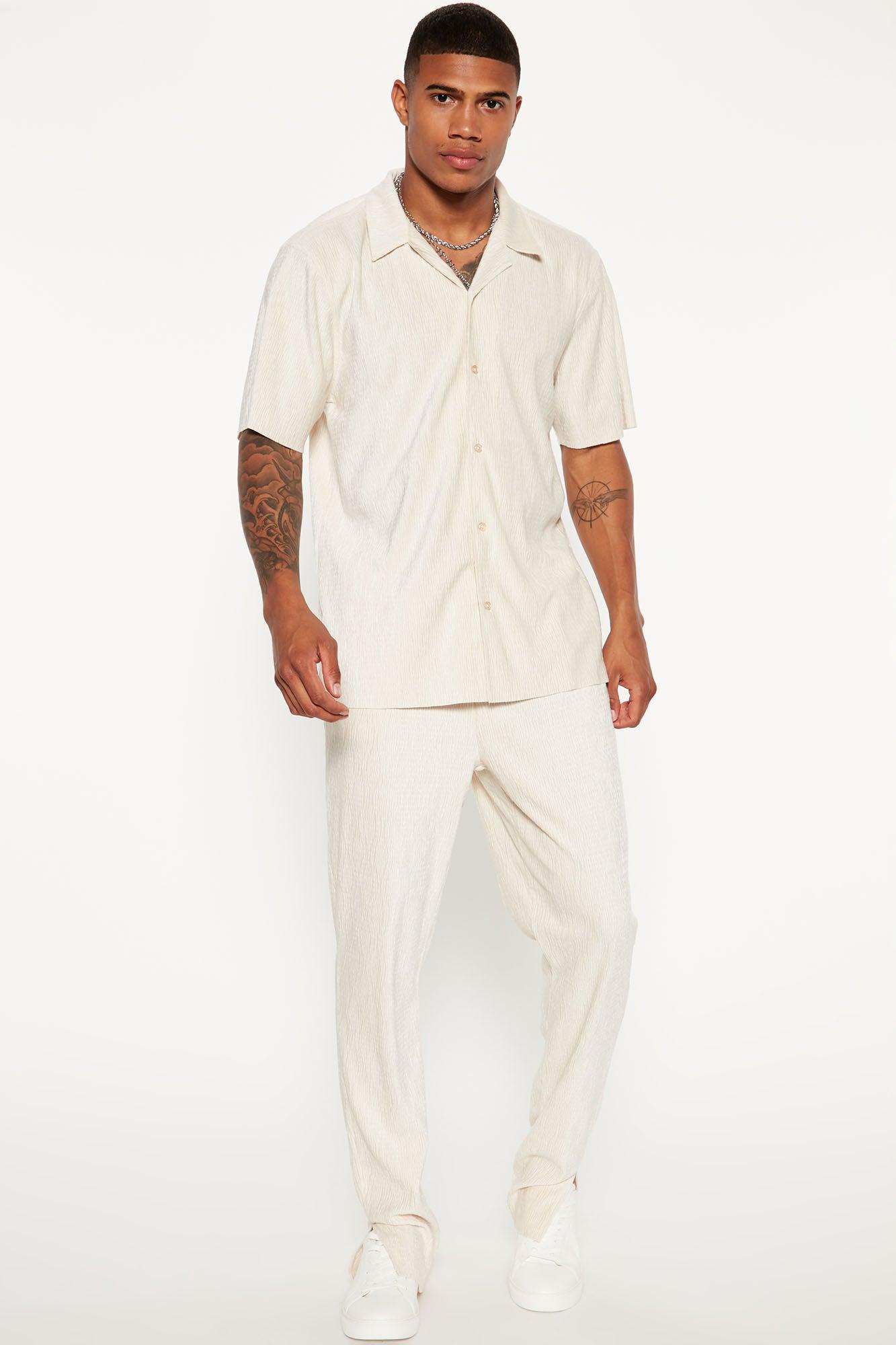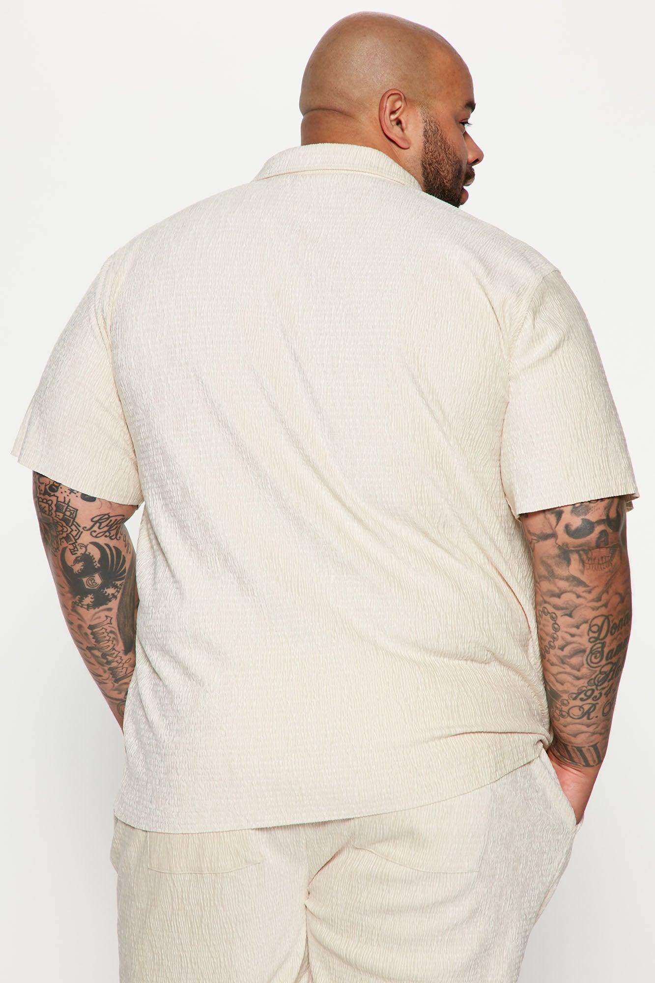Wavy Textured Short Sleeve Cuban Shirt - Off White