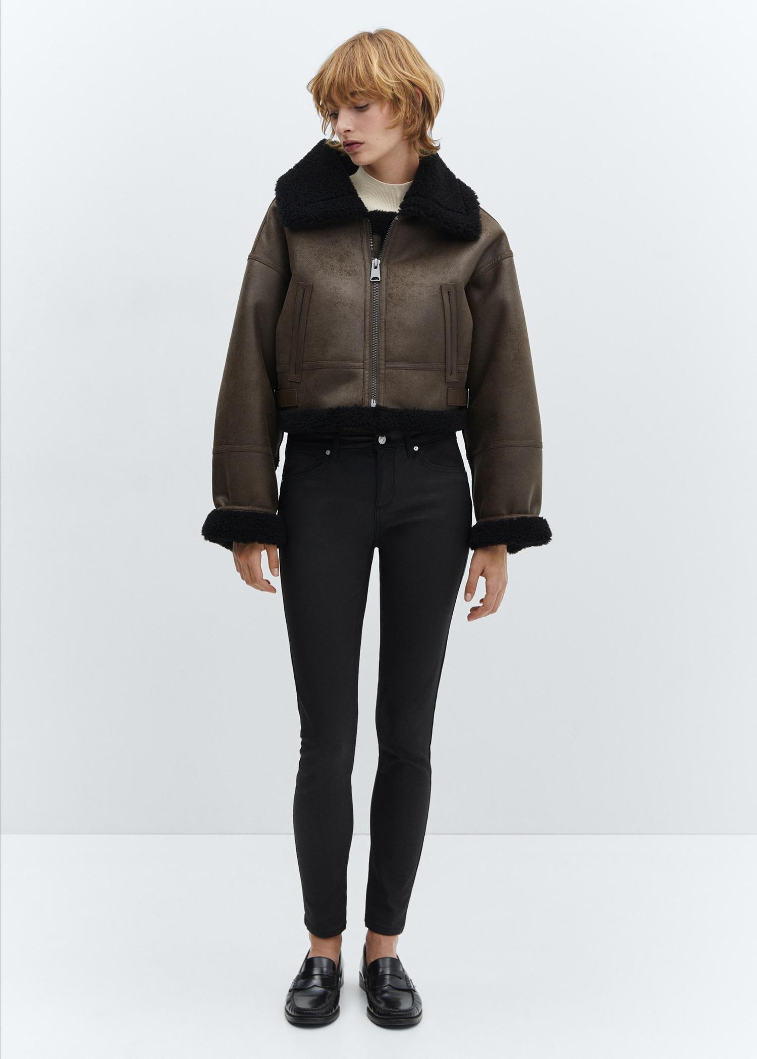Denim-style cotton fabric. Standard length. Medium Flat Structure. Silhouette Push Up. Waist Low Waist. Cotton blend fabric. Elastic fabric. Waxed finish. Long design. Skinny fit. Low waist. Five pockets. Belt loops. Zipper and button closure. Inseam 29.14 in. Available Plus. Full length