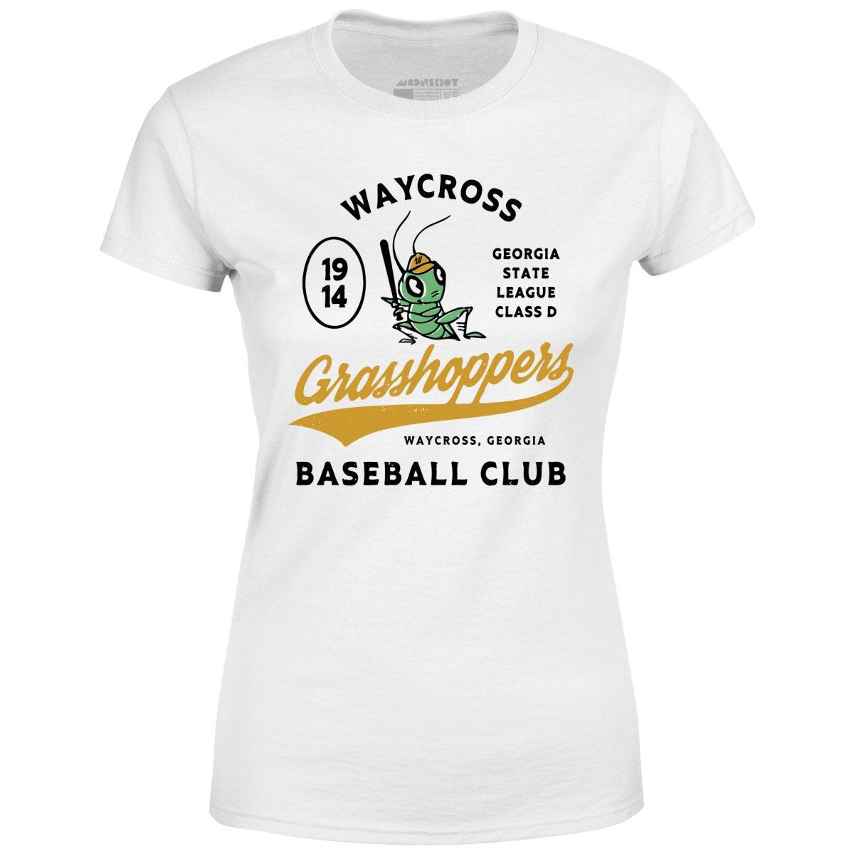 The Waycross Grasshoppers were a minor league baseball team that played in Waycross, Georgia. They existed for the 1914 season and played Class D baseball in the Georgia State League. This design is part of our old school retro baseball tees inspired by the vintage and now defunct Minor League Baseball teams of yesteryear. Printed on our super soft 100% ringspun & combed cotton women's T-Shirt. Or upgrade to our Luxury 52/48 cotton/poly vintage heather edition for an even softer classic look. We print & ship all of our high quality graphic tees in the USA.