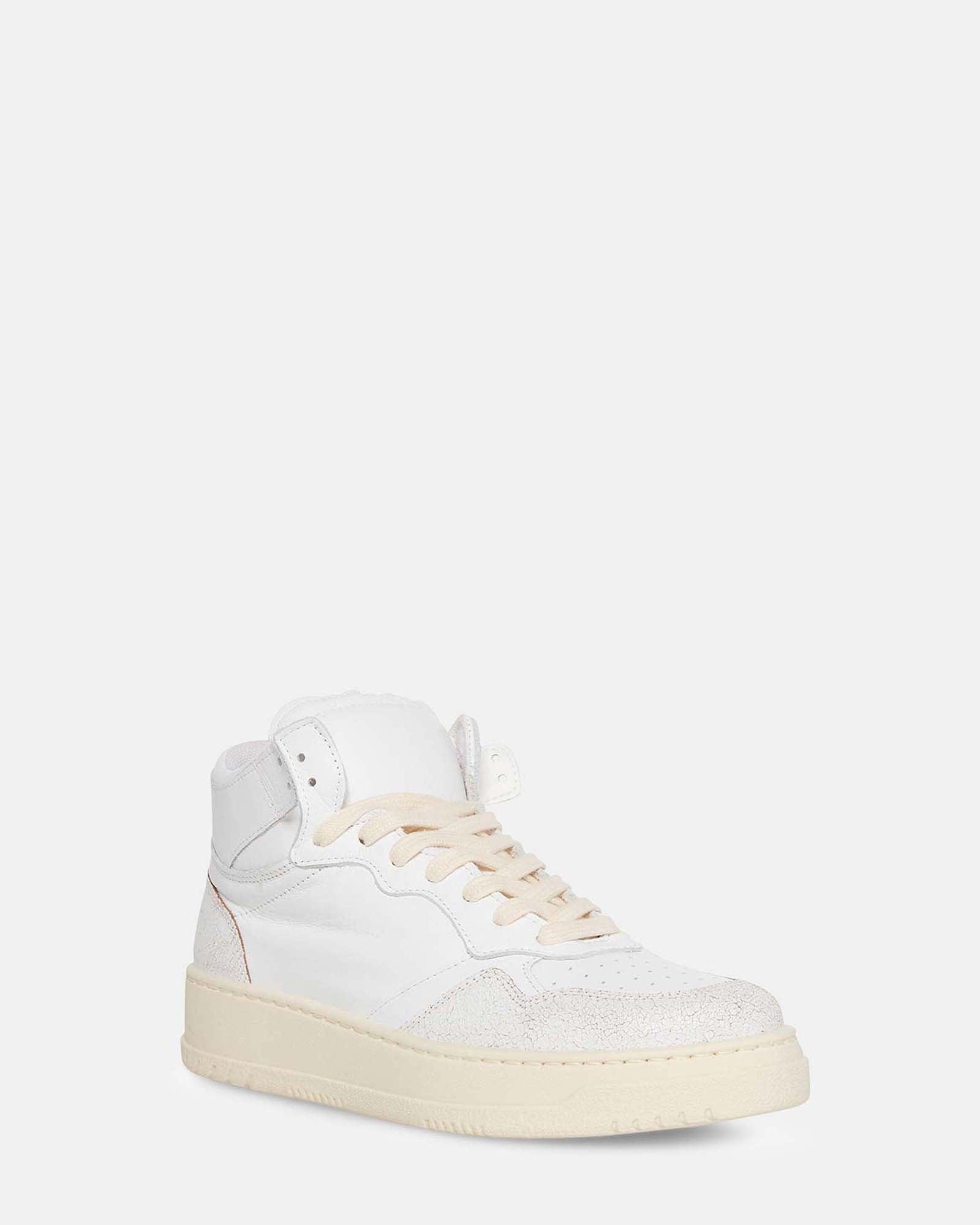 SPORTY + RETRO + POWERFULA tonal panel design with perforated details gives the WAYNE high top sneakers subtle texture. This chunky style is meant to be left unlaced at the top for a slouchy and relaxed look. High top sneaker Laced closure Perforated toe 1 inch heel height Leather upper material Textile lining Textile sock Synthetic sole Imported