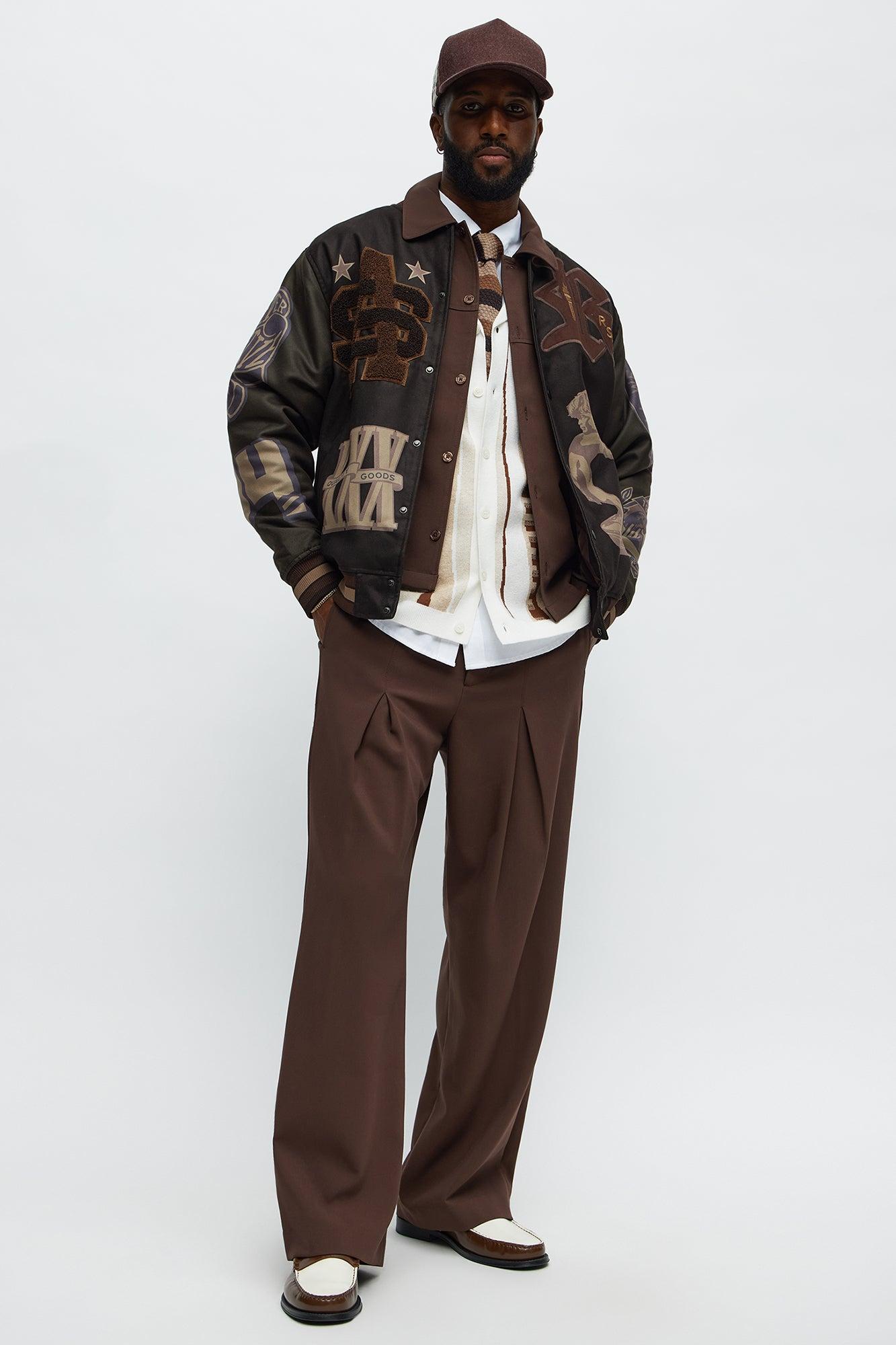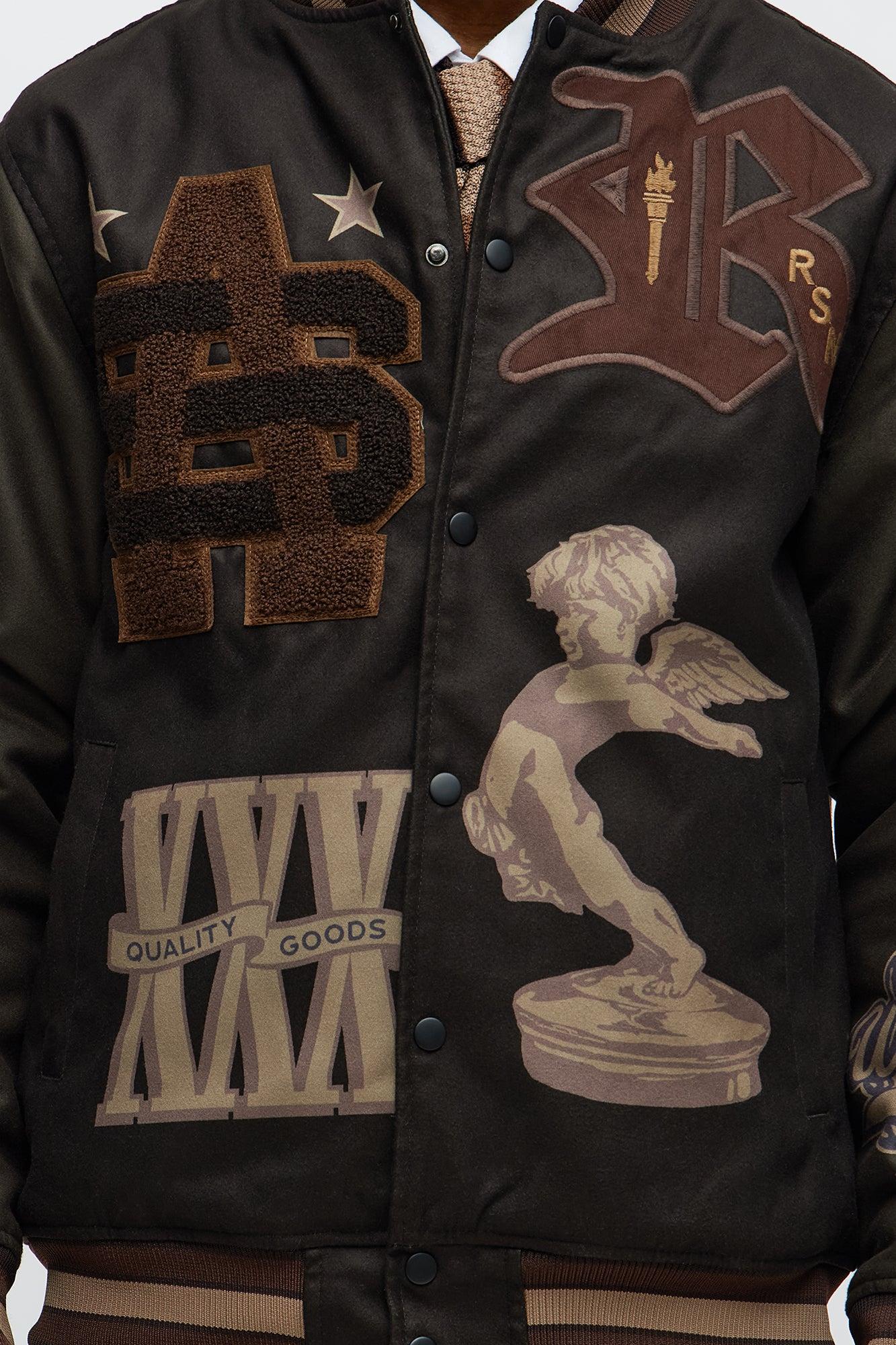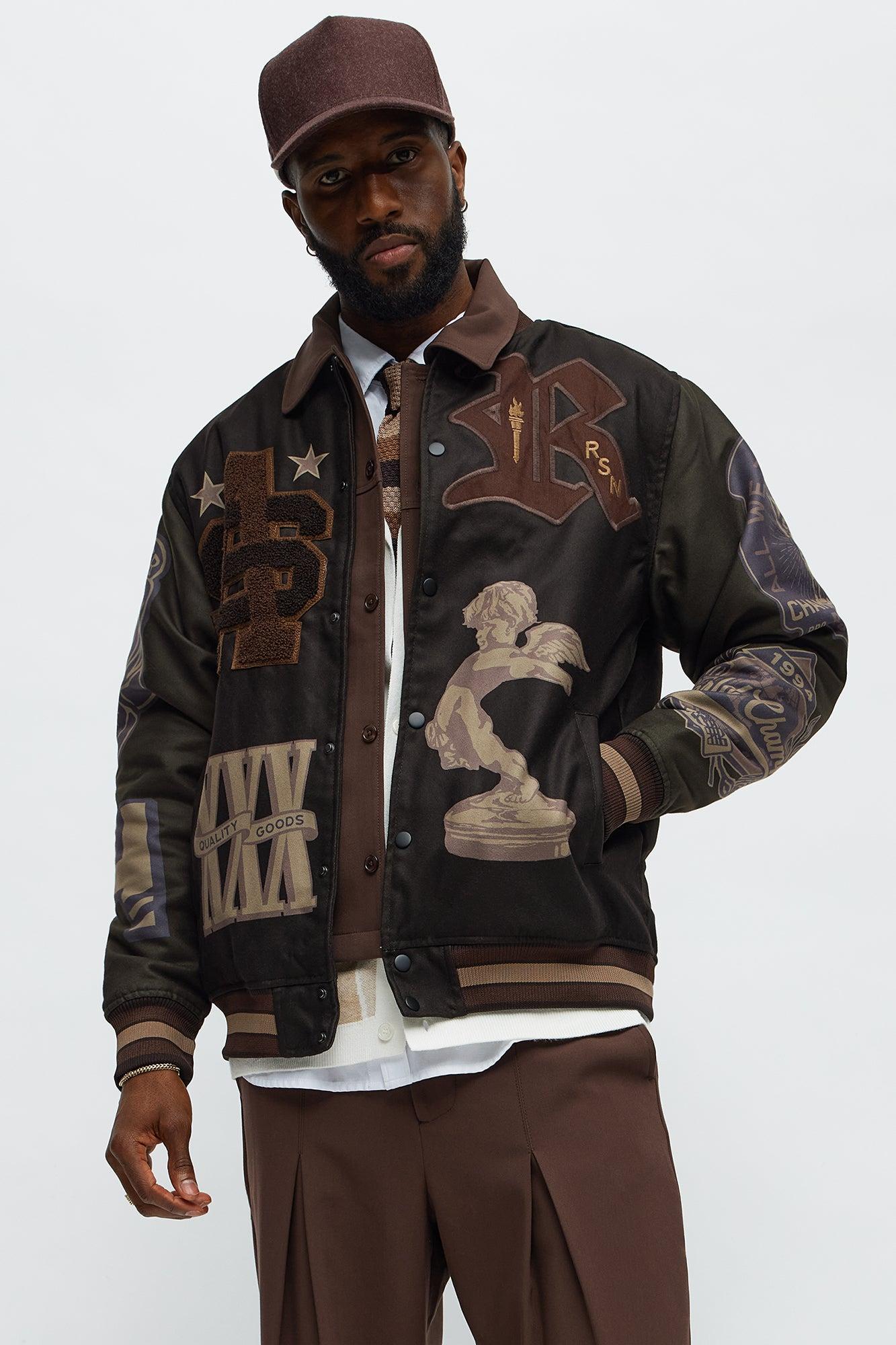 Available In Brown Combo. Ribbed Collar Contrast Trim Full Front Snap Closure Front Graphic And Embroidered Details Side Hand Pockets Back "Champions" Graphic Detail Ribbed Hem And Cuffs Long Sleeves Disclaimer: Due To The Print & Embroidery Placement , Each Garment Is Unique. 100% Polyester Imported