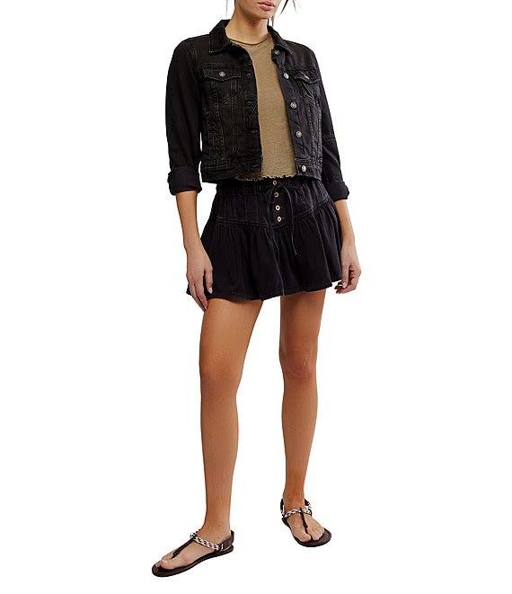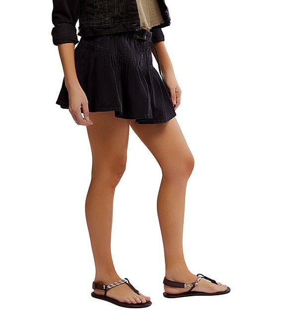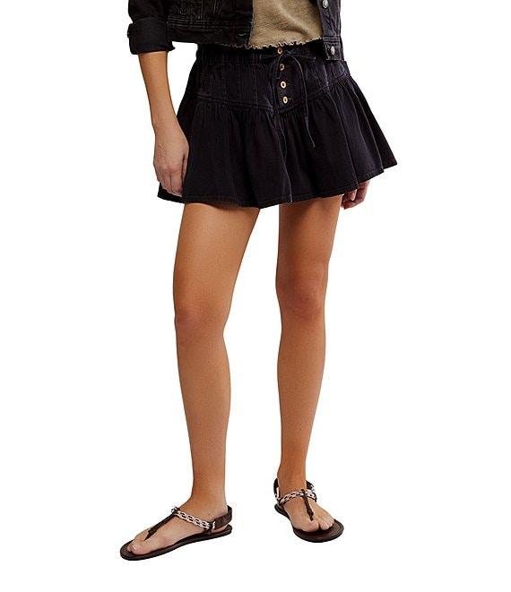 From Free People, this skirt features: High rise Exposed button fly closure A line silhouette Placket seam at yoke Dropped waist detail Drawstring closure at waist Approx. 14.5" length Cotton Machine wash Imported.