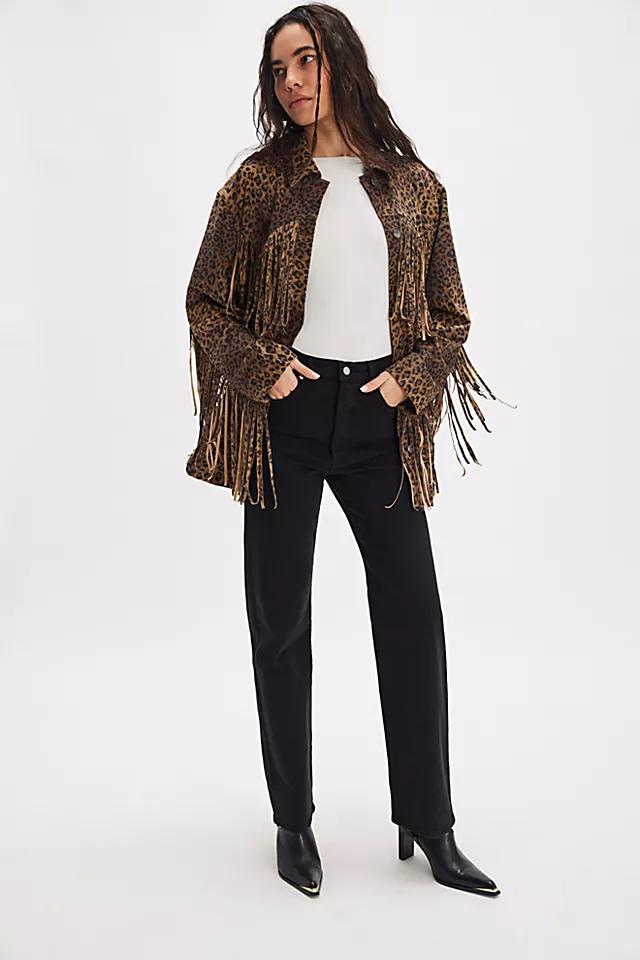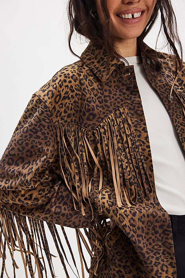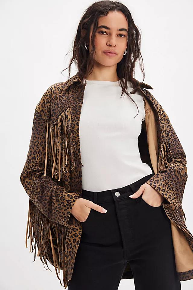 Our favorite fringed-out vegan jacket from We The Free, now in a new wild print.