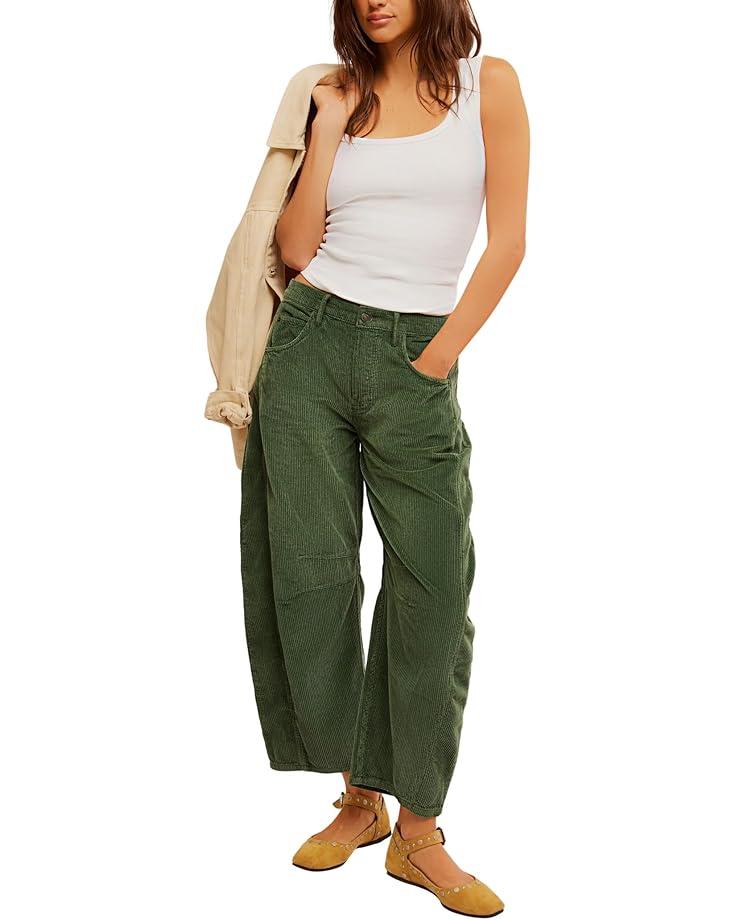 A part of the We The Free collection, the Free People™ Good Luck Cord pants feature textured corduroy fabrication for all-day comfort. These pants are designed in a wide-leg silhouette with a mid-rise waist that sits between the belly button and hips, below the natural waist. Crafted with seam detail throughout and a tapered bottom hem, these mid-rise jeans are finished with a zip-fly, buttoned closure, and belt loops. A great addition to your denim collection, these barrel jeans pair perfectly with tank tops and casual tees.