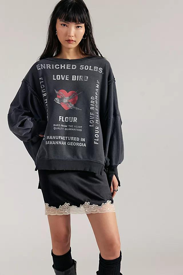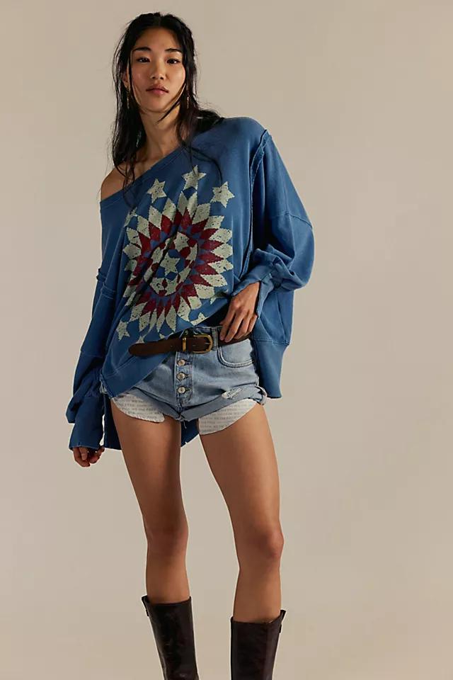 **Features:** Scoop neckline, dropped shoulders, side slits at bottom, ribbed hems, defined seaming