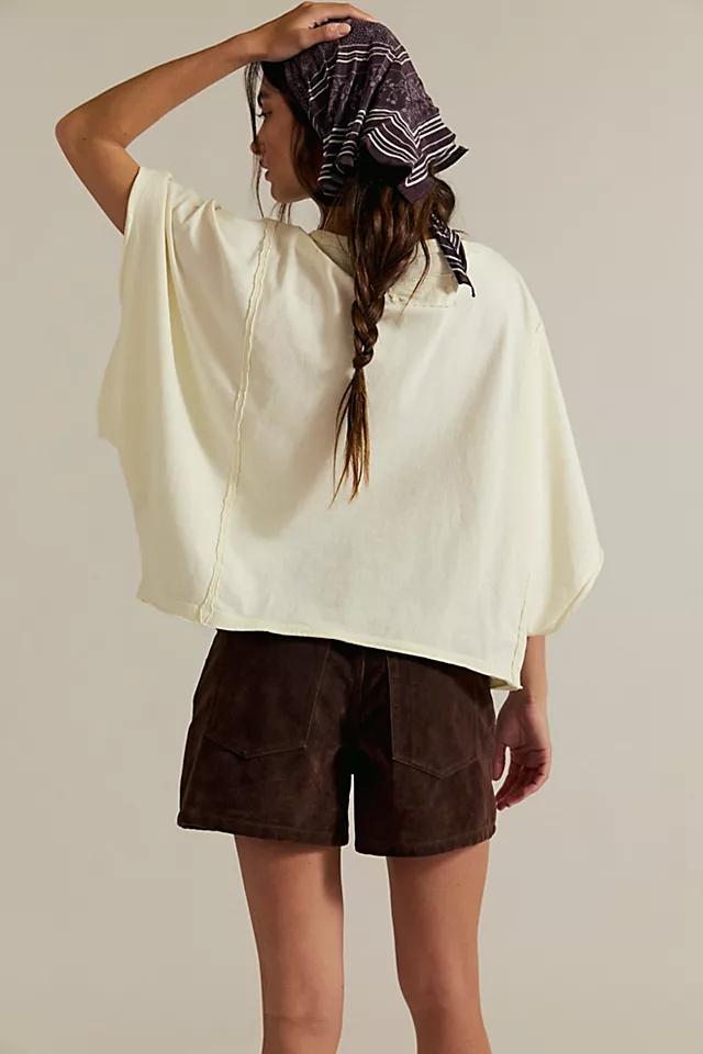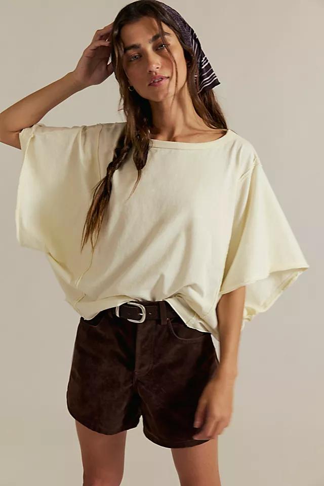 Take your look to the next level with this versatile tee from We The Free, featured in a statement bat-wing silhouette for that intentional slouchy shape. * Boat neckline * Cotton jersey fabrication * Extra-wide dolman sleeves * Boxy fit