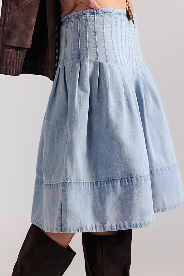 Forever femme with vintage-inspired charm, this sweet skirt from our We The Free collection features pintucked pleating at the waistband with a dropped waist seam and soft, lightweight denim.