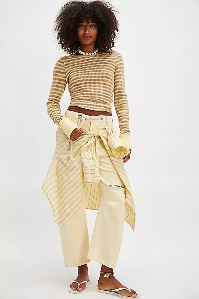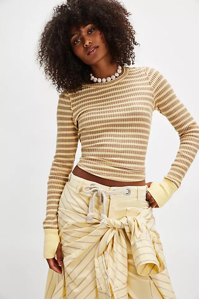 Your new favorite base-layer from our We The Free collection, this soft thermal is featured in a printed design with raw seaming and exaggerated cuffs. **Fit:** Slim fit, hip length **Features:** Soft cotton fabrication, printed detailing, crew neckline, raw seaming, long-sleeves with exaggerate cuffs and thumbhole detail, round hemline **Why We ❤ It:** This essential long-sleeve is the perfect combination of flattering and functional.