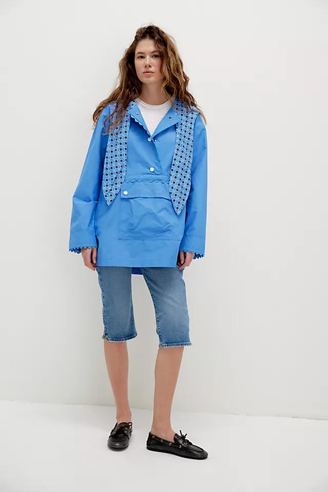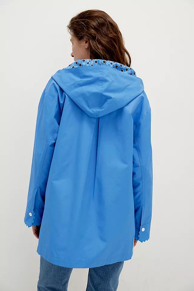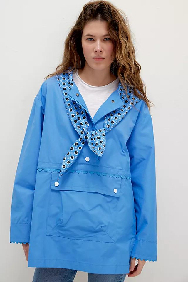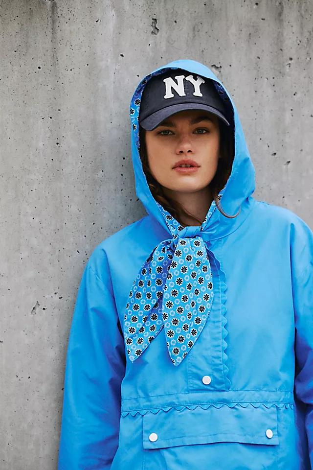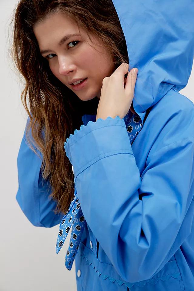 Not your average rain jacket—this one from We The Free features playful accents like a printed neck-tie detail and scalloped trims.