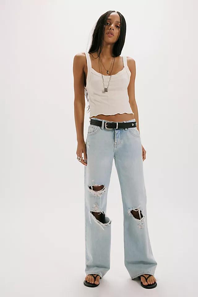 Classic low-rise boyfriend jeans from our We The Free collection featured in a rigid fabrication and timeless silhouette.