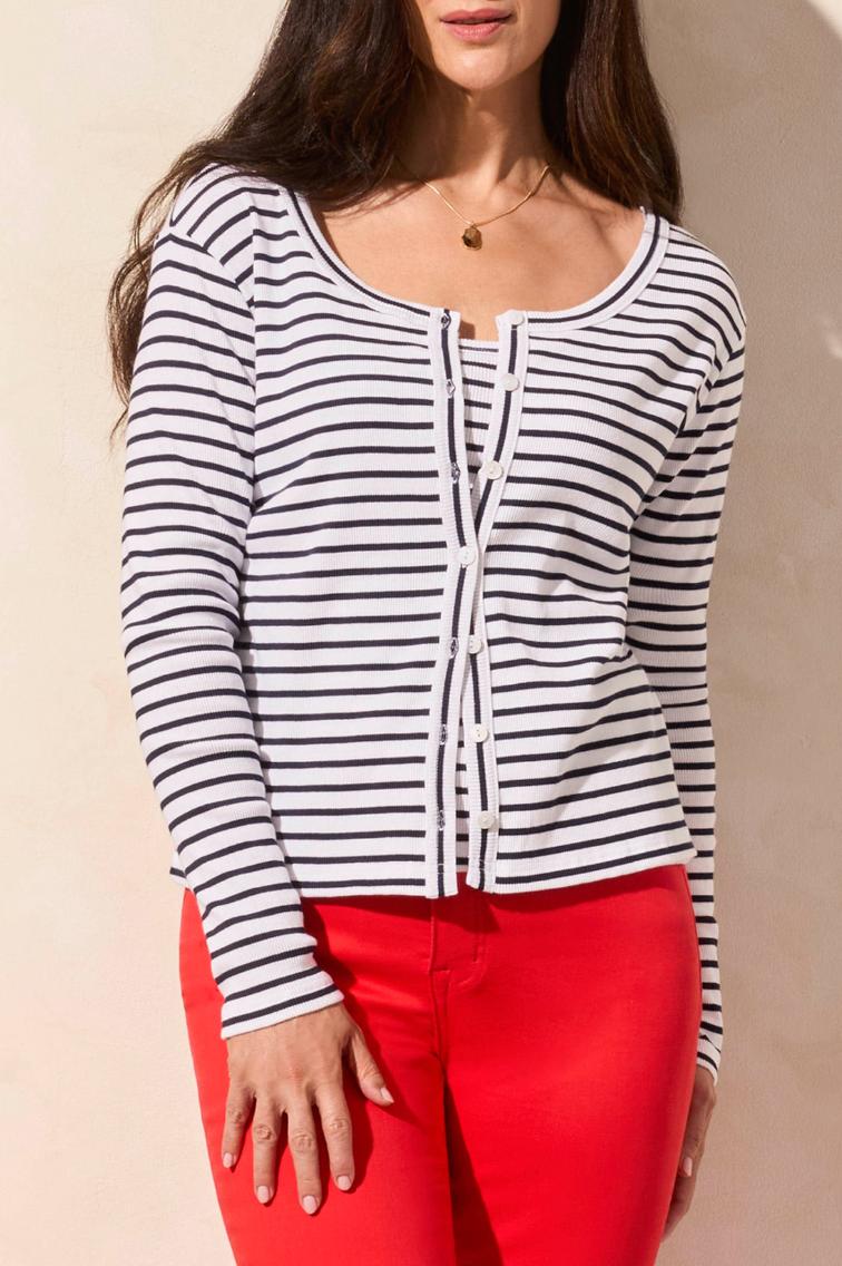 Wear 2 Ways Crew Nk BTN Down Cardi - Nautical Stripe