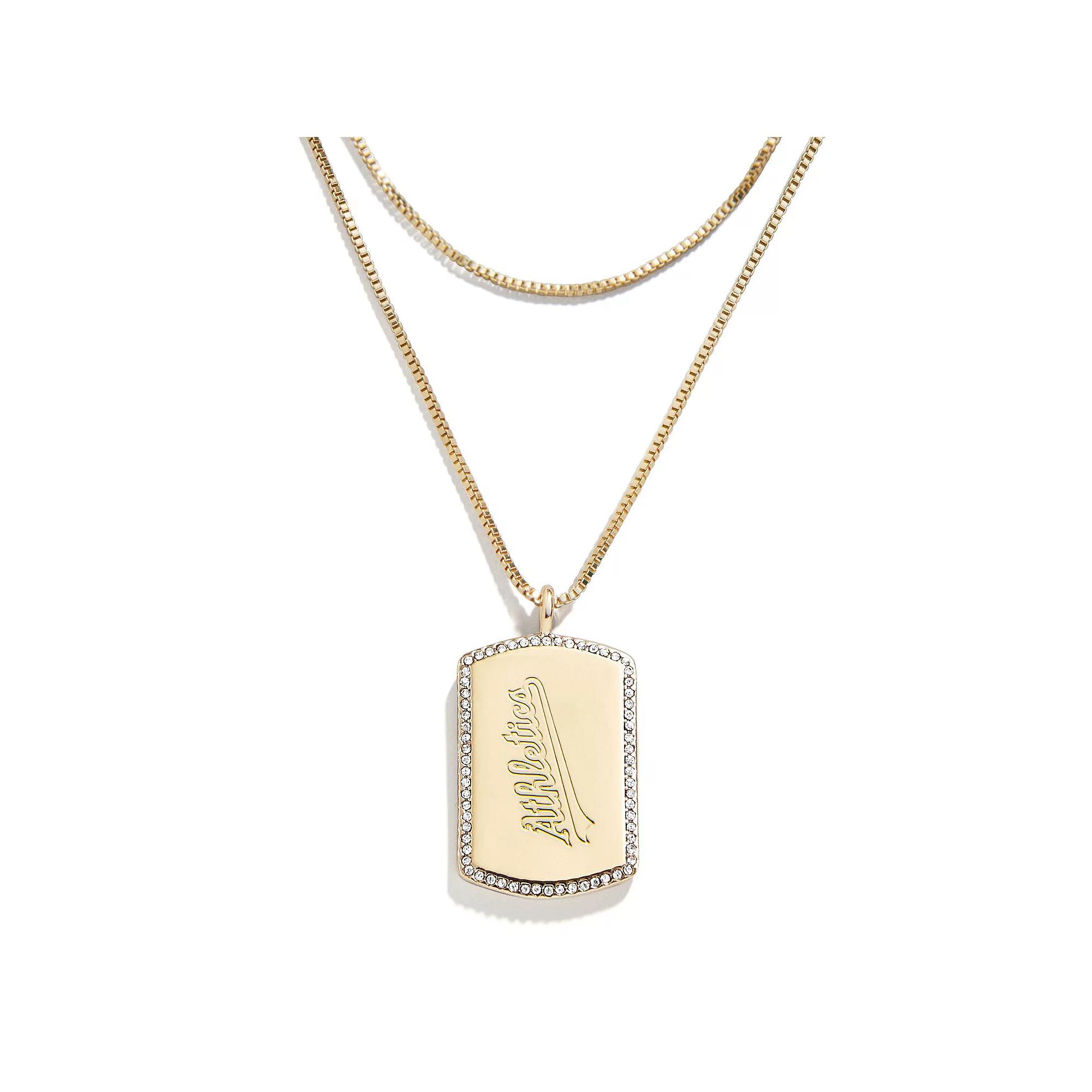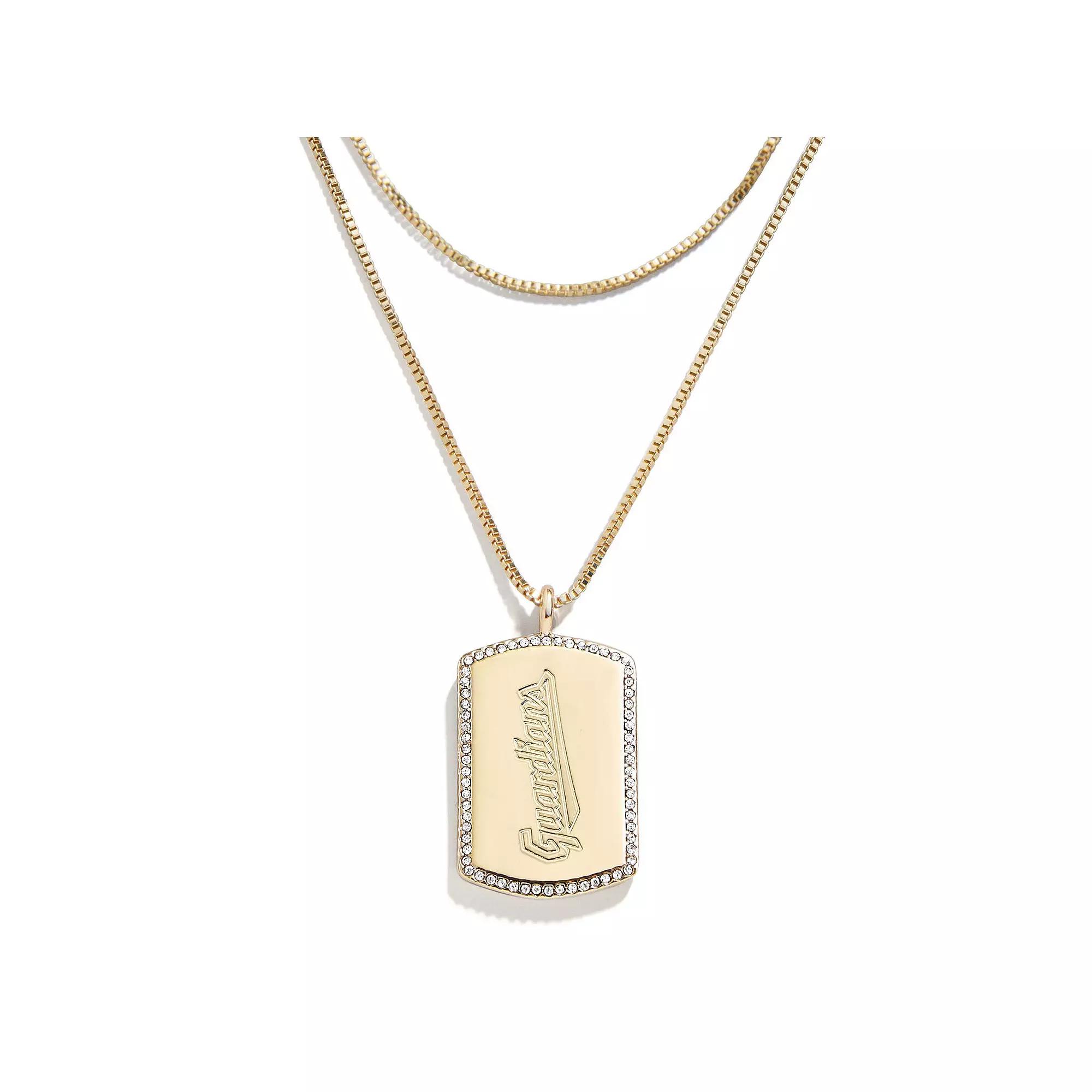 Make your team spirit sparkle and shine with this Cleveland Guardians Dog Tag necklace. BaubleBar and WEAR by Erin Andrews collaborated to create this layered set featuring debossed details on both sides of the dog tag pendant and shimmering embellishments. A lobster claw clasp ensures this Cleveland Guardians necklace fits just right.Make your team spirit sparkle and shine with this Cleveland Guardians Dog Tag necklace. BaubleBar and WEAR by Erin Andrews collaborated to create this layered set featuring debossed details on both sides of the dog tag pendant and shimmering embellishments. A lobster claw clasp ensures this Cleveland Guardians necklace fits just right.PRODUCT FEATURESHypoallergenicLobster claw clasp with 3.75 extenderMaterial: 100% Gold-Plated Sterling SilverLayeredWipe clean with a damp clothOfficially licensedDog tag measures approx. 1Double-side designGlass stonesImportedDrop length measures approx. 11.5Debossed graphicsBrand: WEAR by Erin Andrews Size: One Size. Gender: female. Age Group: adult.