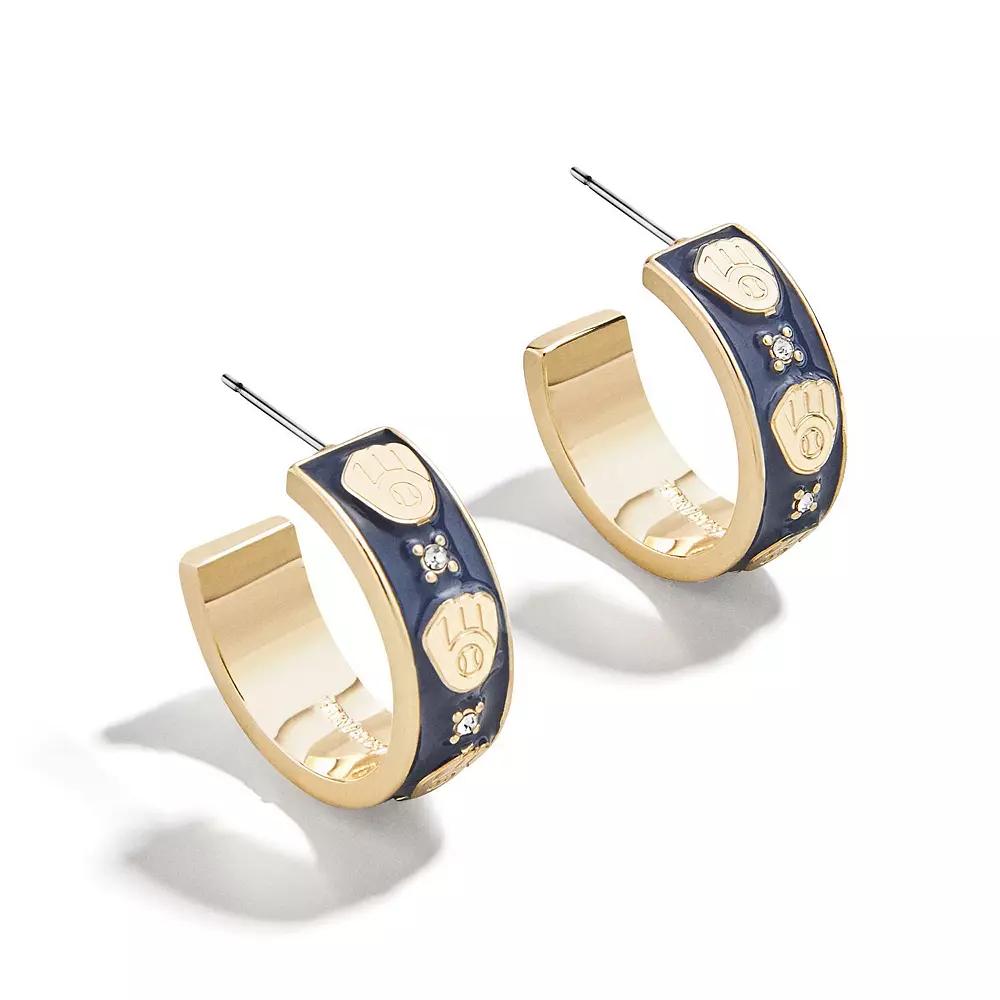 Show off your Milwaukee Brewers pride with these stylish Enamel Hoop Earrings from WEAR By Erin Andrews x BaubleBar. These Milwaukee Brewers earrings are hypoallergenic and feature gold-plated brass with enamel and glass stone details. The post-back closure ensures a secure and comfortable fit for showcasing your Milwaukee Brewers spirit.Show off your Milwaukee Brewers pride with these stylish Enamel Hoop Earrings from WEAR By Erin Andrews x BaubleBar. These Milwaukee Brewers earrings are hypoallergenic and feature gold-plated brass with enamel and glass stone details. The post-back closure ensures a secure and comfortable fit for showcasing your Milwaukee Brewers spirit.PRODUCT FEATURESBrand: WEAR by Erin AndrewsImportedPost backMaterial: 80% Brass/13% Enamel/5% Glass/2% CZHypoallergenicGold plated brassOfficially licensedEnamel, glass stones Size: One Size. Gender: female. Age Group: adult.