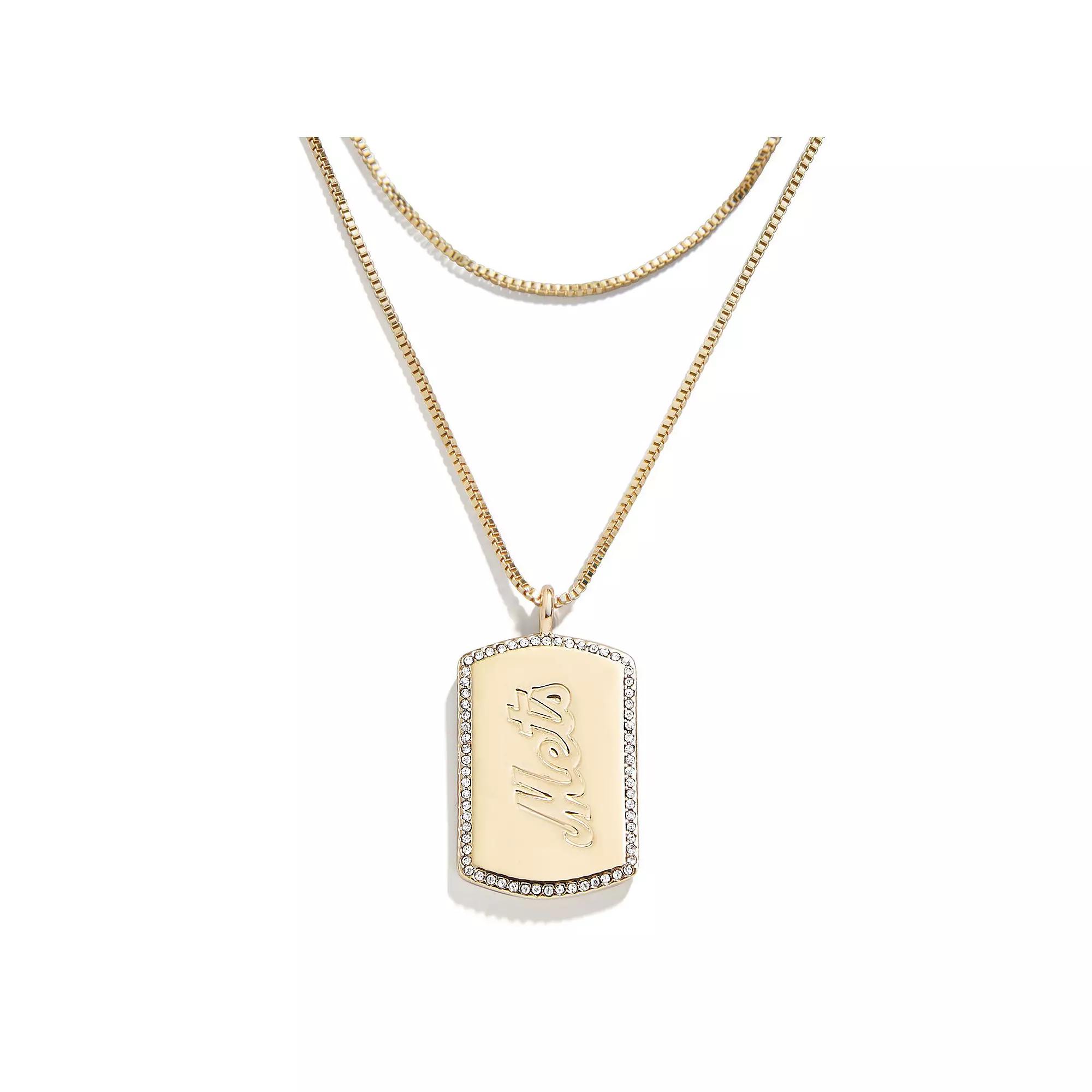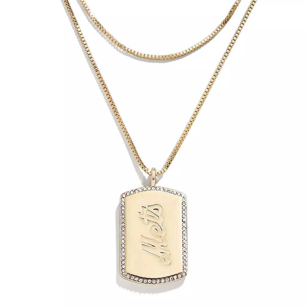 Make your team spirit sparkle and shine with this New York Mets Dog Tag necklace. BaubleBar and WEAR by Erin Andrews collaborated to create this layered set featuring debossed details on both sides of the dog tag pendant and shimmering embellishments. A lobster claw clasp ensures this New York Mets necklace fits just right.Make your team spirit sparkle and shine with this New York Mets Dog Tag necklace. BaubleBar and WEAR by Erin Andrews collaborated to create this layered set featuring debossed details on both sides of the dog tag pendant and shimmering embellishments. A lobster claw clasp ensures this New York Mets necklace fits just right.PRODUCT FEATURESDrop length measures approx. 11.5Glass stonesWipe clean with a damp clothOfficially licensedMaterial: 100% Gold-Plated Sterling SilverLobster claw clasp with 3.75 extenderHypoallergenicImportedDog tag measures approx. 1Debossed graphicsLayeredDouble-side designBrand: WEAR by Erin Andrews Size: One Size. Gender: female. Age Group: adult. Material: OTHER MATERIAL.