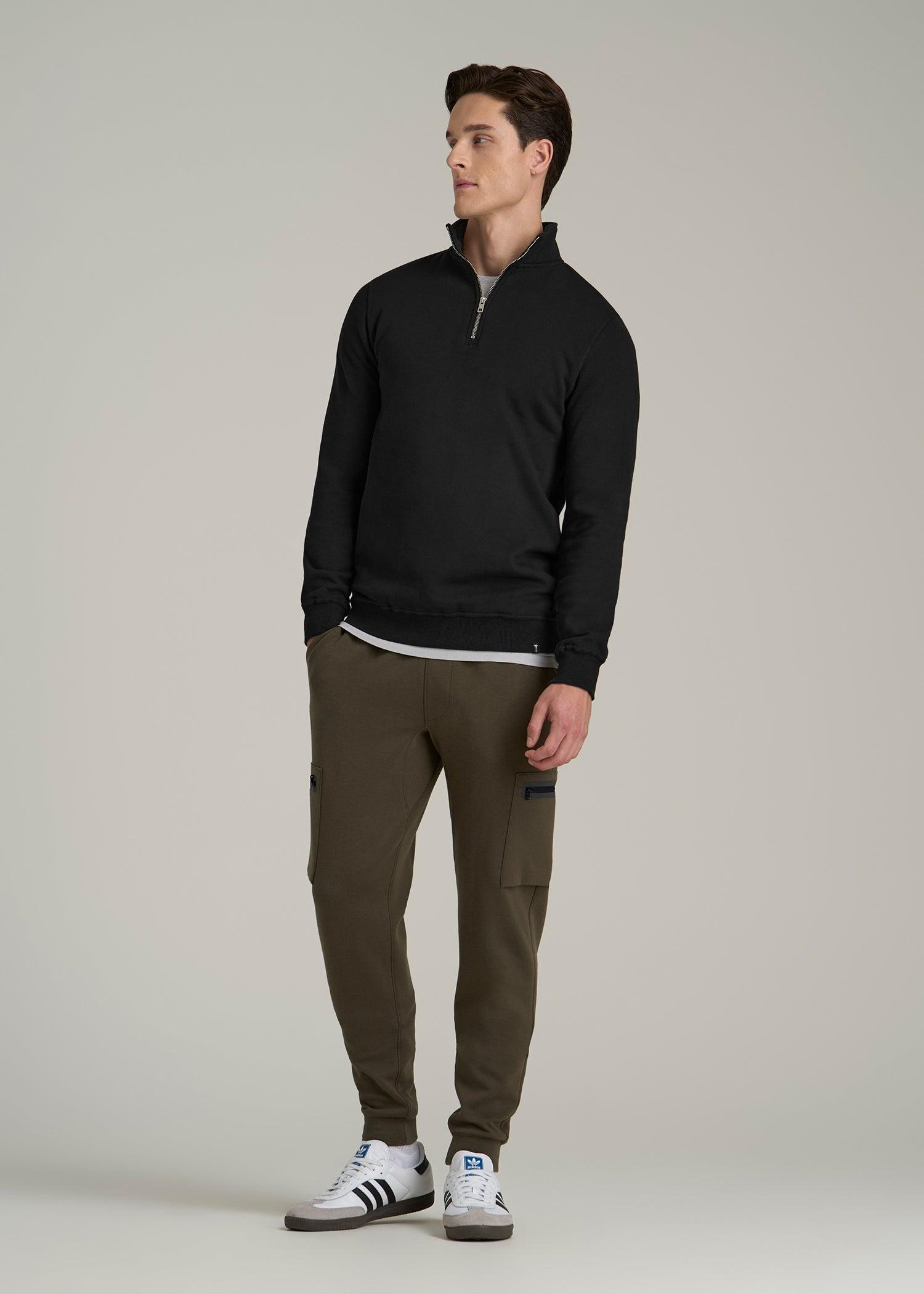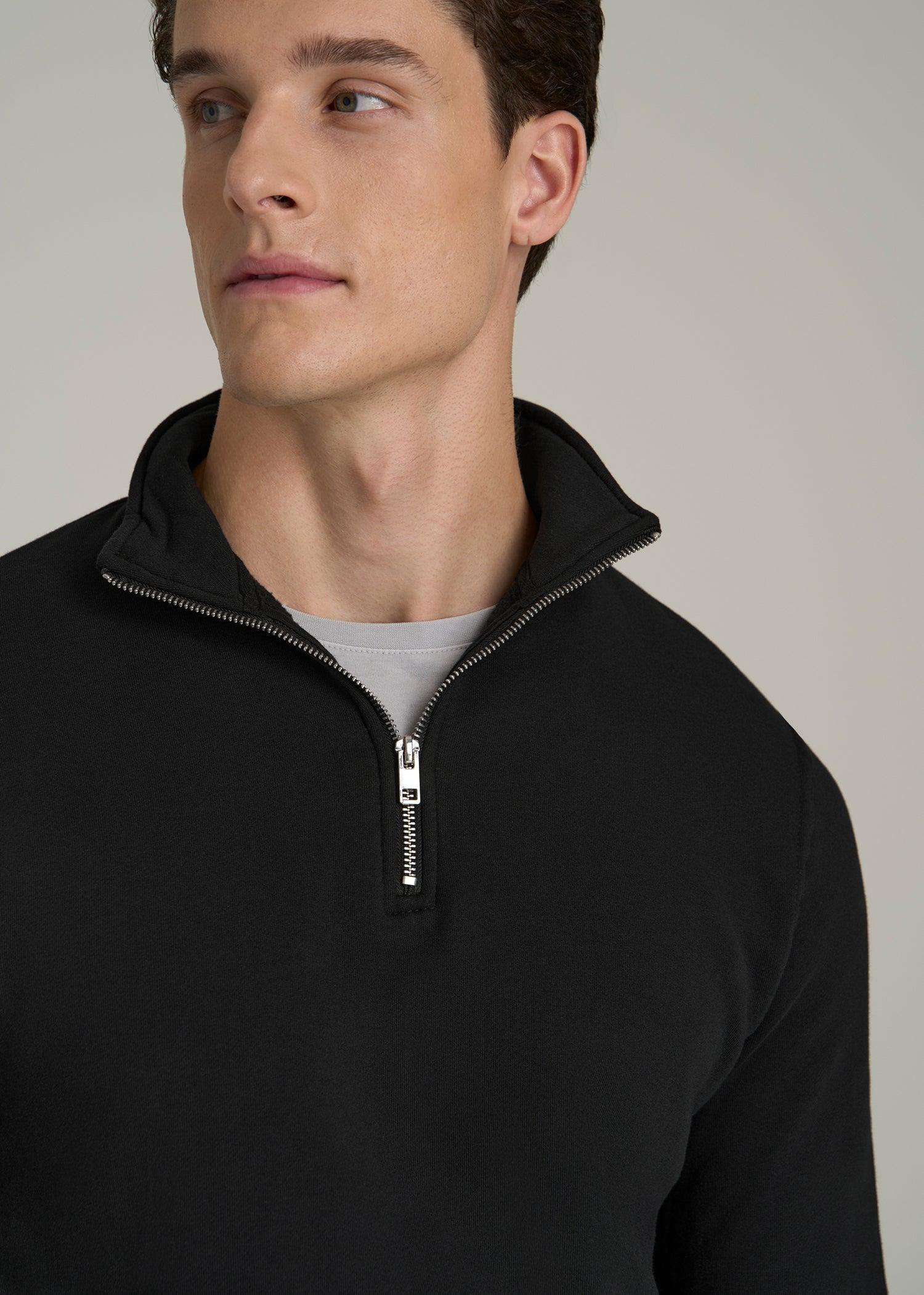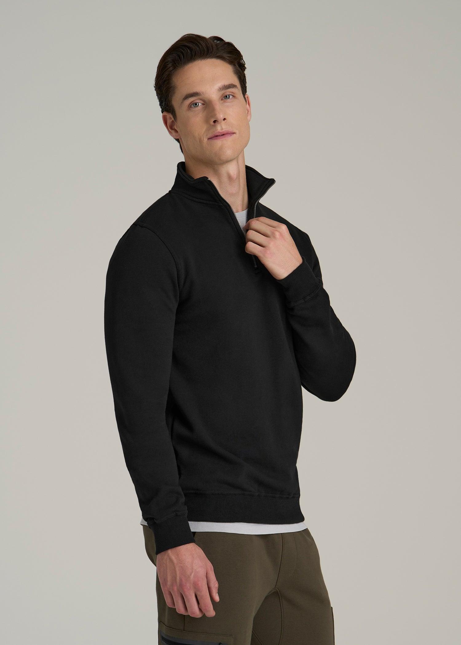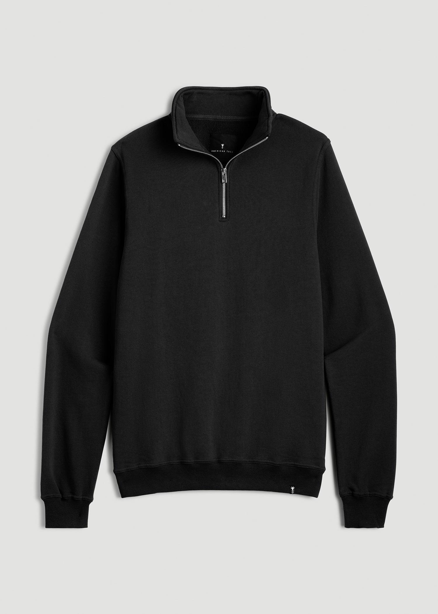 About Our Extra-Long Sweatshirt You'll be searching for excuses to wear this classic menswear style everywhere. Good quality sweatshirts for tall men are hard to come by, with sleeves that are way too short and lengths that are always riding up. This quarter-zip is the tall men's sweatshirt you've been looking for and the perfect layering piece for any season. It has extra-long sleeve lengths and a hem that will hit right below the hip. The quarter-zip makes it versatile enough that you can dress it up or down, whether you want to wear it out to dinner or to hang out on the couch. It's made of our ultra-comfy Wearever fleece blend that's soft to the touch and has been pre-washed and shrinkage controlled so you don't have to worry about throwing it in the dryer. Wear it over top of a button-up shirt with a pair of dark-wash jeans for more formal occasions or with matching joggers and a fitted tee for lazy nights at home. SIZE & FIT: Modern fit Long sleeves Mock neck with quarter-zip Hip length Model is 6'6", wearing size M Tall Size M Tall: Body length: 31", Sleeve length: 39.5" FABRIC & CARE: 80% cotton, 20% polyester Fleece Pre-washed and shrinkage controlled Ribbed cuffs and hem Machine wash cold with like colors Tumble dry low, low heat iron Do not bleach