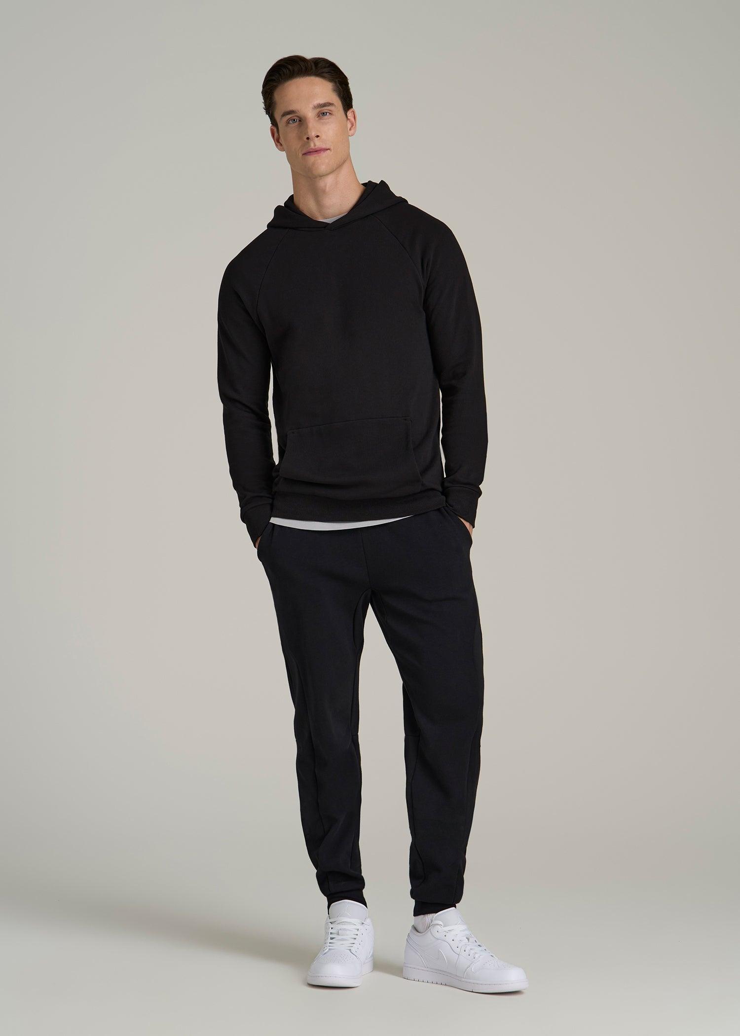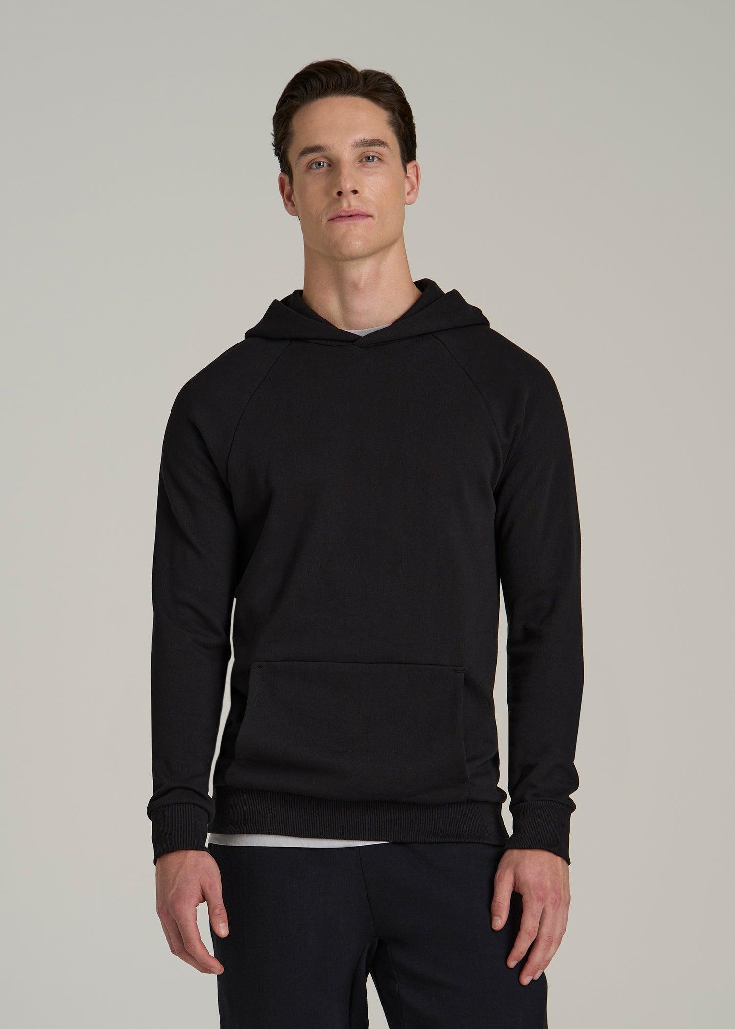 About Our Hoodies for Tall Men We consider this french terry hoodie to be one of the most comfortable hoodies for tall men out there. This everyday layer checks all the boxes: fashionable, wear it wherever, comfy, and soft to the touch. This men's tall hoodie features a front kangaroo pocket, and raglan sleeves. Plus, it's made of a lightweight cotton-polyester blend, which means it is perfect for layering over your tees or under a jacket. This Wearever french terry raglan tall hoodie is designed for men 6'3 - 7'1 and offers a cozy feel that's perfect for all seasons. SIZE & FIT: French terry knit Long sleeves Modern fit Hip length Model is 6'9", 250lbs wearing size L Tall Size L Tall: Body length: 32", Sleeve length: 40" FABRIC & CARE: 80% cotton, 20% polyester Pre-washed and shrinkage controlled Ribbed cuffs and hem Machine wash cold with like colors Tumble dry low, low heat iron Do not bleach