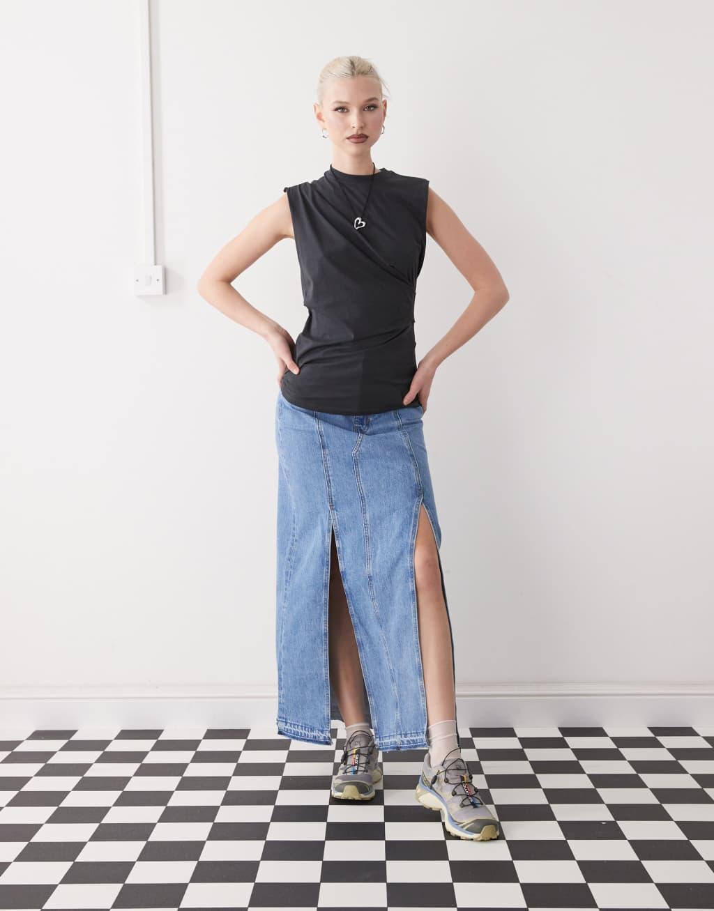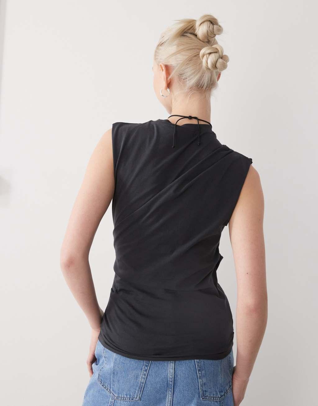 Top by Weekday Plain design Crew neck Sleeveless style Drape detailing Regular fit