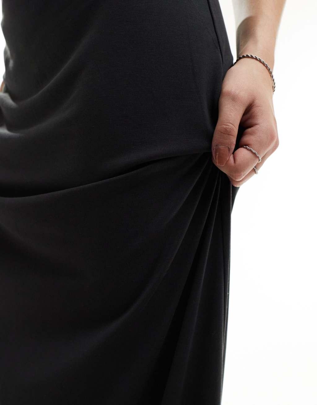 Weekday Signe drape midi skirt in black