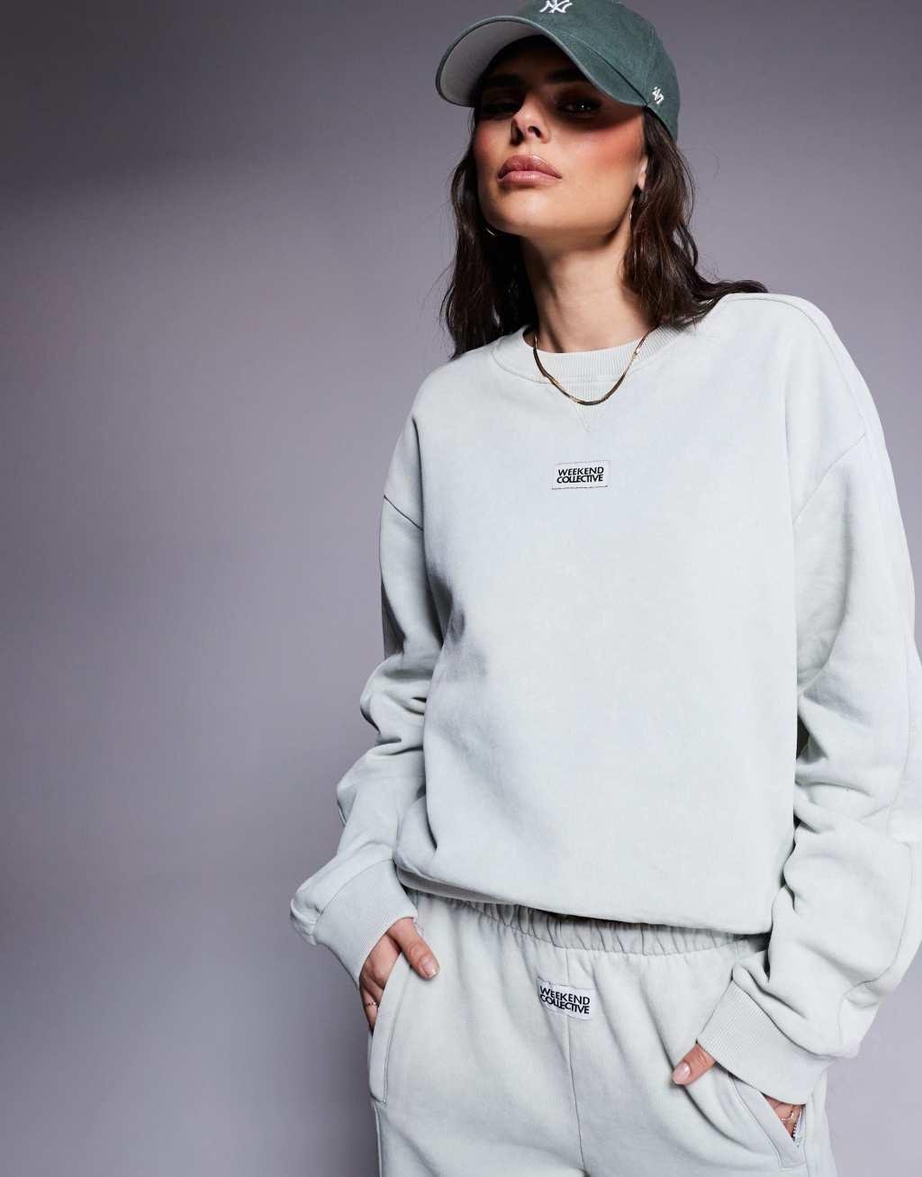 Hoodies & Sweatshirts by ASOS WEEKEND COLLECTIVE Part of a co-ord set Sweatpants sold separately Crew neck Drop shoulders Logo patch on front Ribbed trim Oversized fit