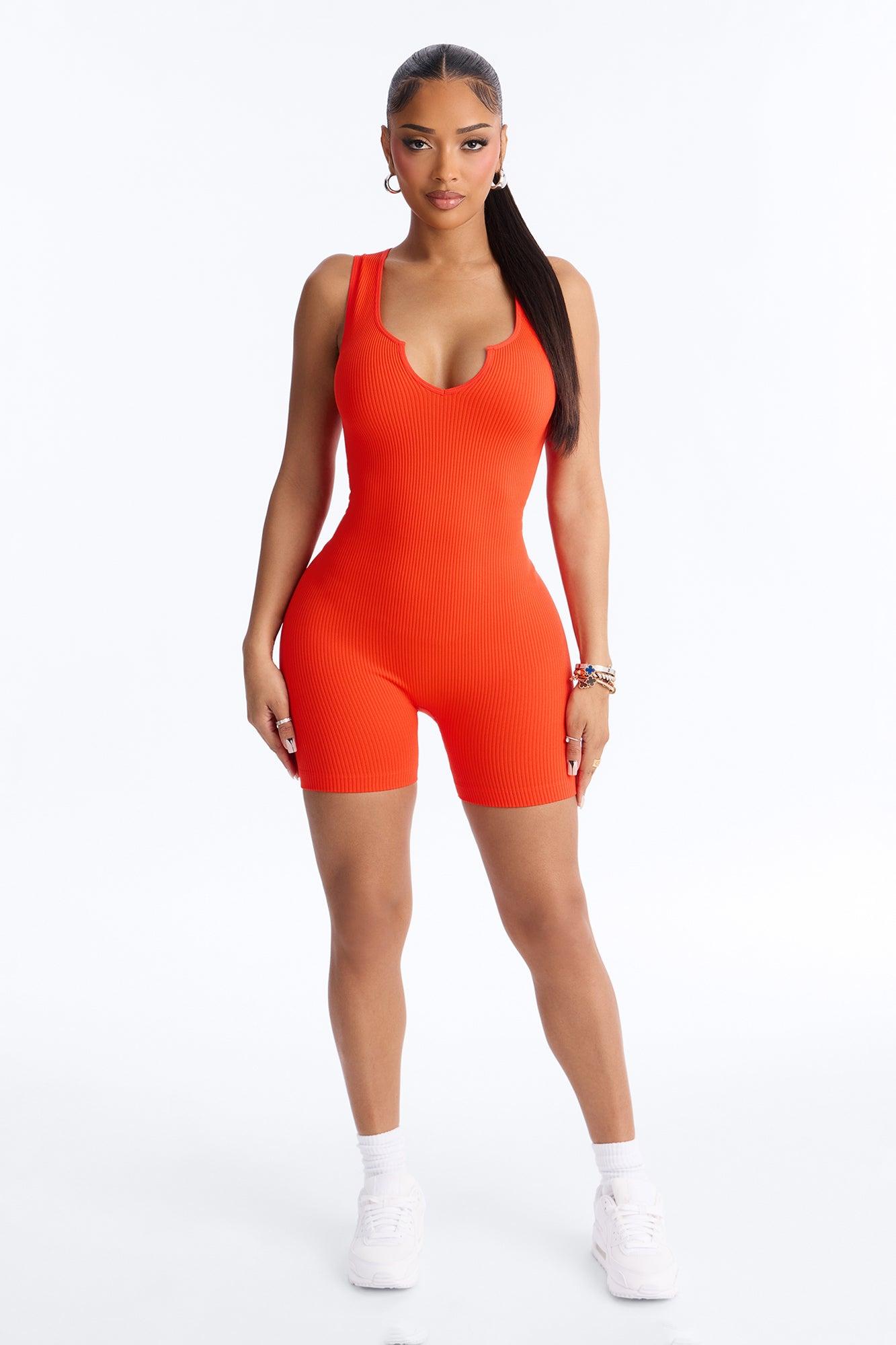 Weekend Errands Seamless Biker Short Romper - Red