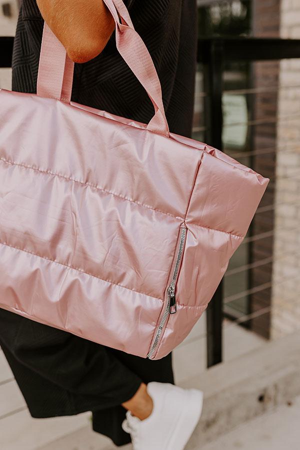 - Perfect for road trips, daily gym visits, or everyday use, this trendy bag has enough space to carry all your essentials and so much more! Keep it cute no matter your destination with this adorable piece. - Metallic faux leather material with a puffy, quilted texture - Silver colored metal hardware - A large two zippered pocket on the front - Top zip closure - Two handles as well as a detachable, adjustable length shoulder strap - A spacious, fully lined interior featuring to accessory pockets as well as a zippered pocket