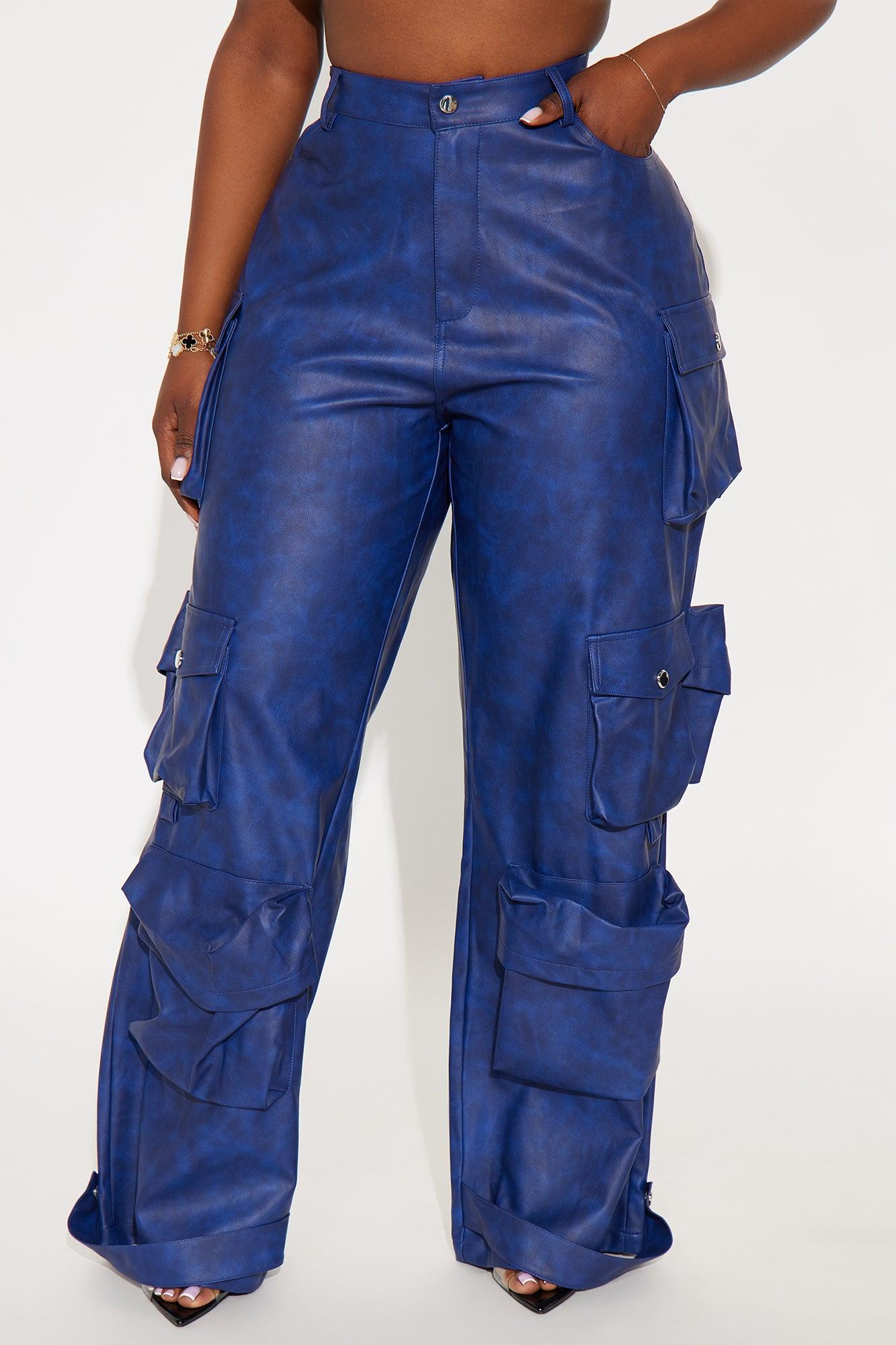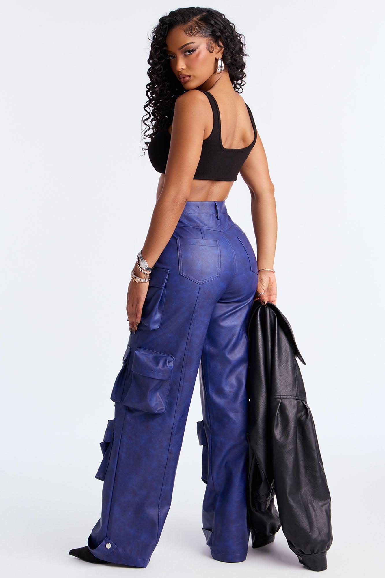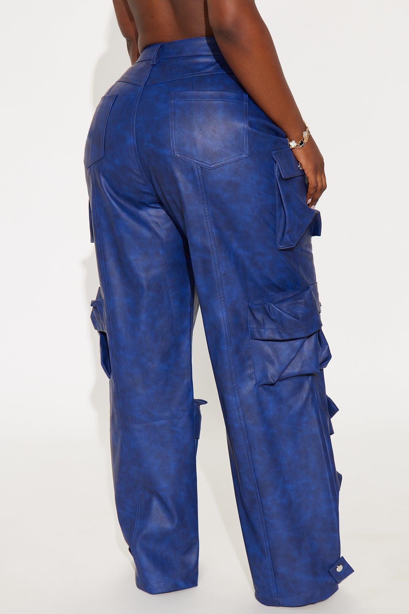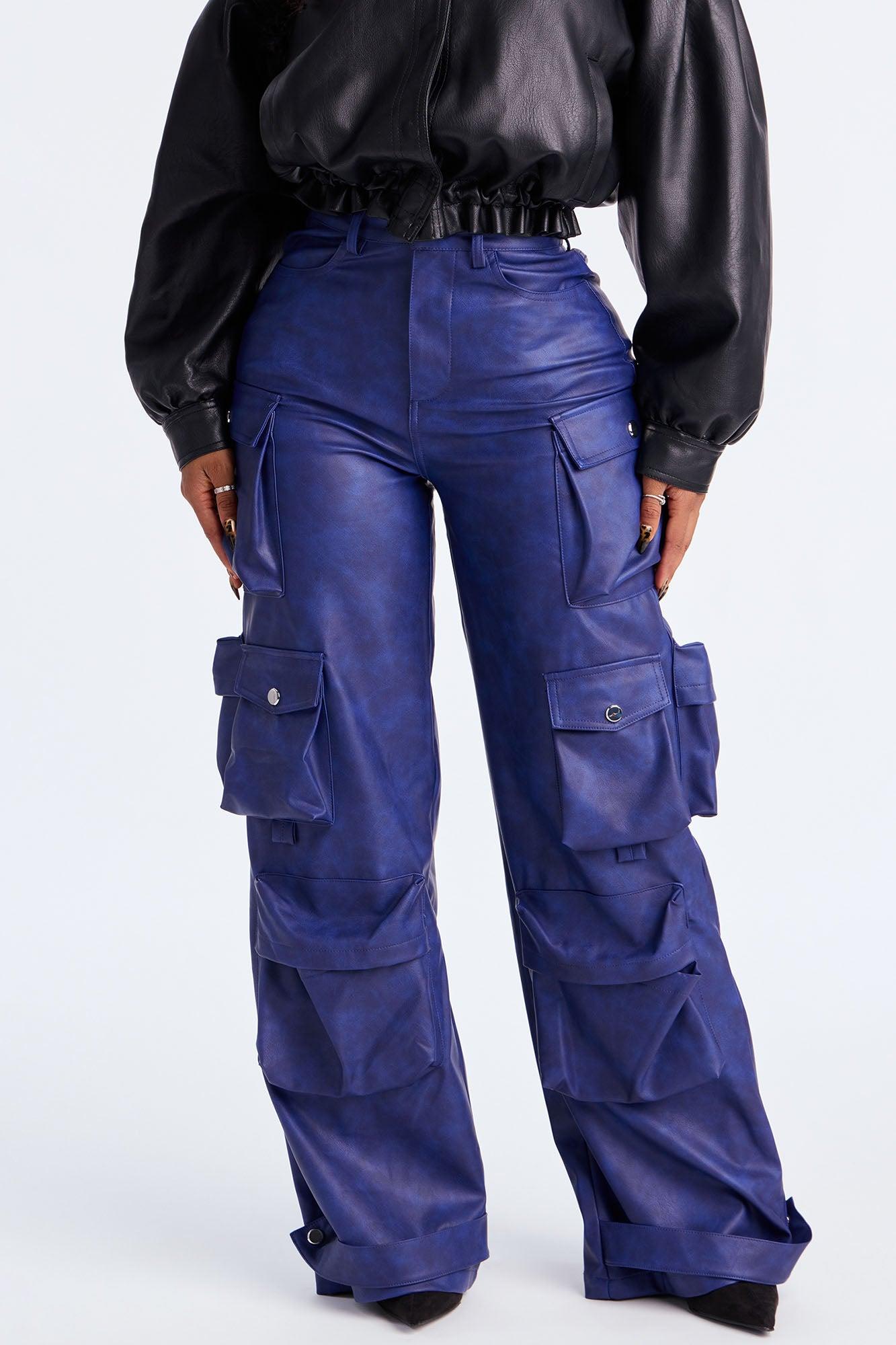 Weekend Warrior Washed Faux Leather Cargo Pant - Blue Female