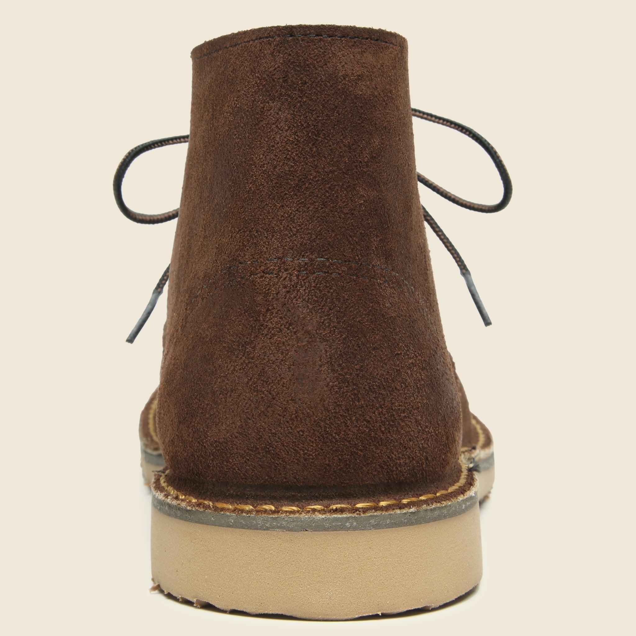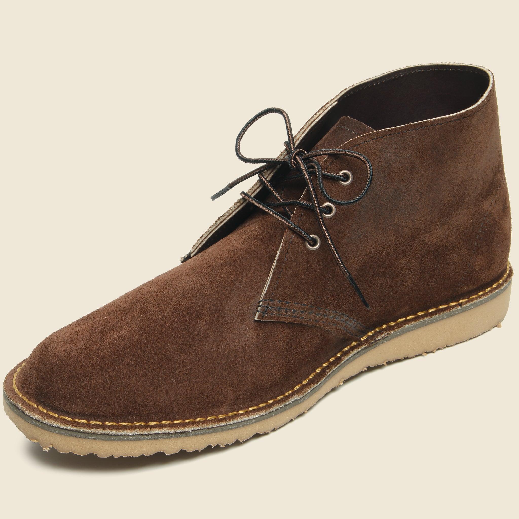 The Weekender Chukka No. 3315 from Red Wing Heritage has an improved silhouette for a true-to-size flexible fit that conforms to the natural shape of most foot types. The new Ortholite footbed is made with 30% sustainable content that provides superior cushioning and enhanced rebound for all-day, on-your-feet comfort. Featuring a Chocolate Muleskinner full-grain leather suede upper and their comfortable ‘Hill’ rubber outsole, this is the knock-around pair of chukkas your feet deserve.