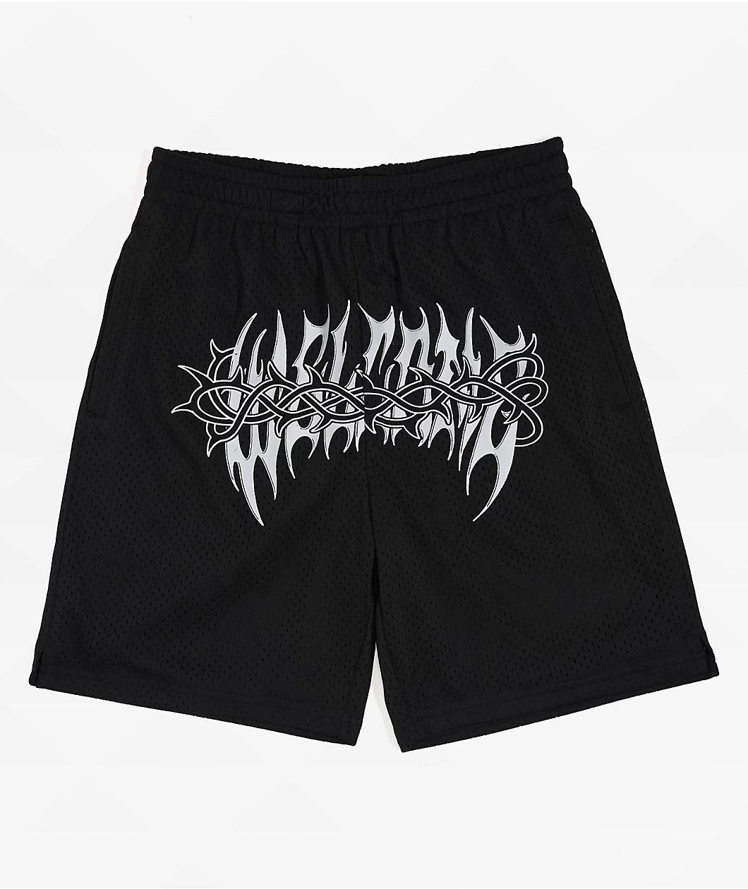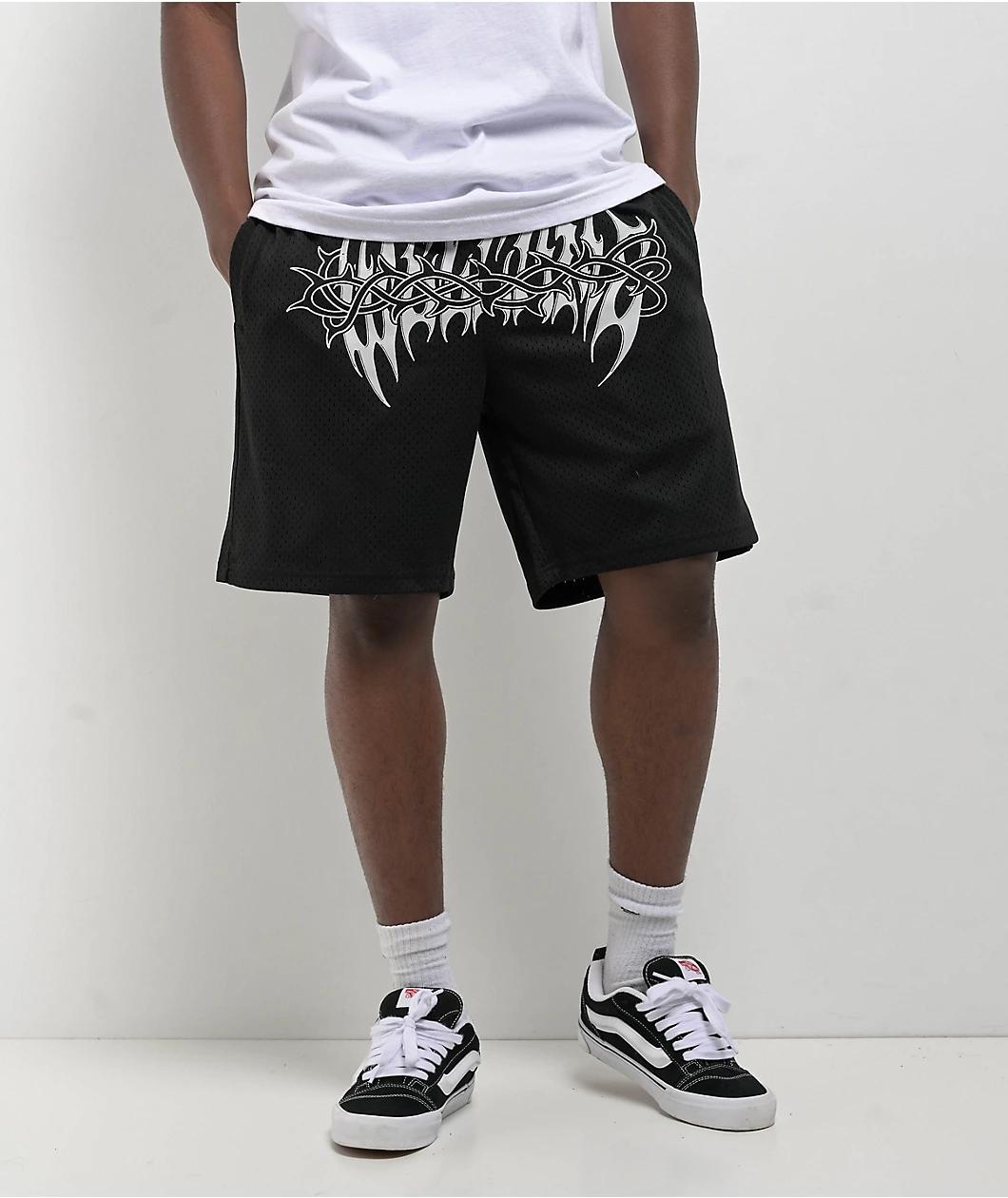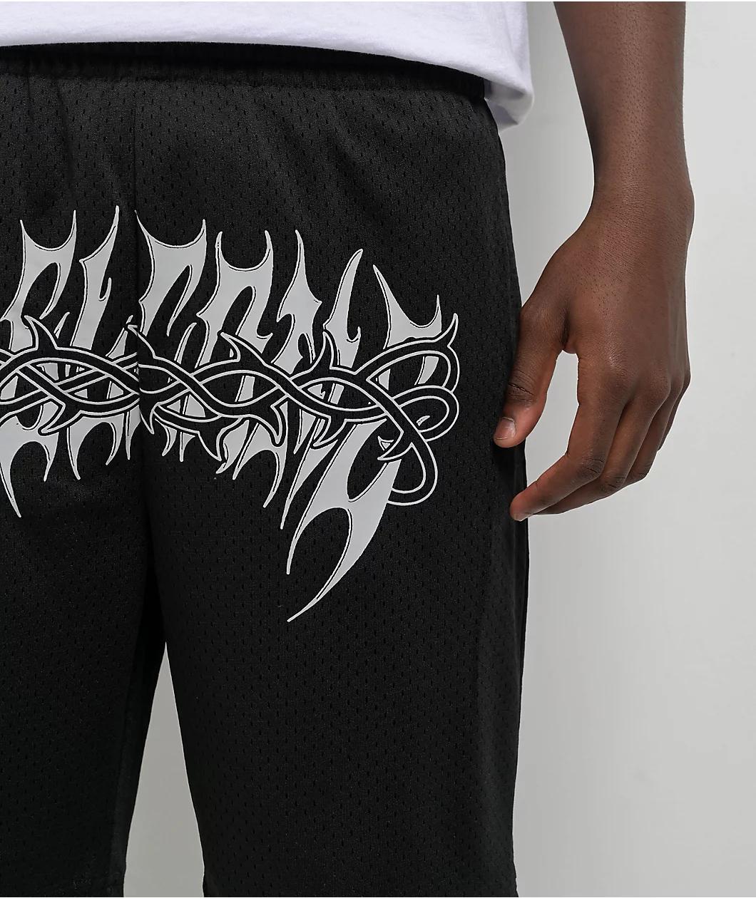 Combining an athletic silhouette with alternative vibes, Welcome Skateboards introduces the Brier mesh shorts in a solid black polyester build with a printed design on the front. Adorned with cyber sigilism branding covered by prickly stems of a dang