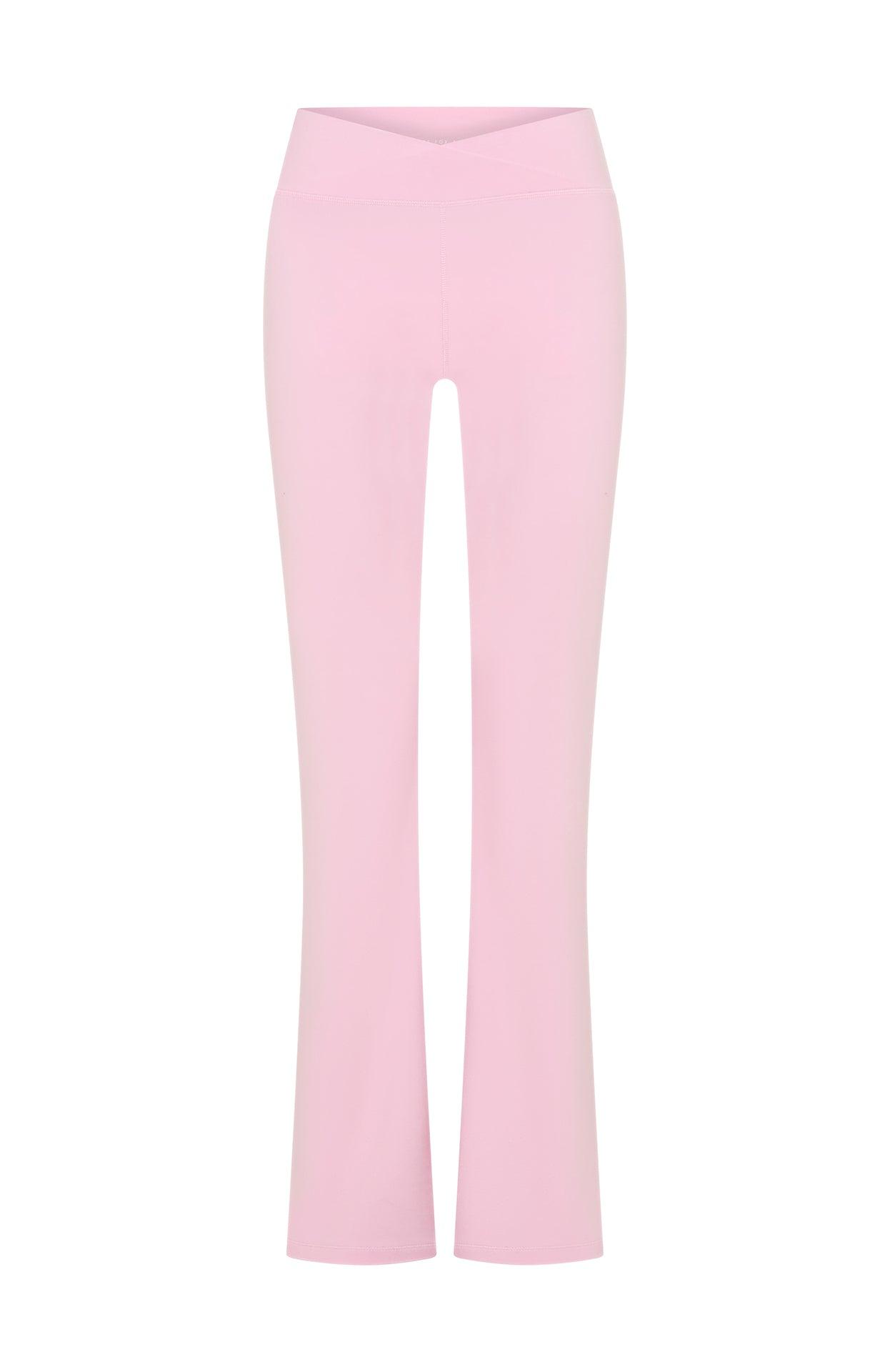 WHITE FOX ACTIVE When it comes to activewear, these leggings have a flair for the stylish. These leggings have a mid-rise waist. feature printed logo centre back, cross-over front design and flare legs. We love this paired with any of our Sports Bras or Crops in Ballet Pink! 71% Polyester 29% Elastane Em is 170cm & is wearing an XS Natalie is 173cm & is wearing an XS Inseam Length 85cm